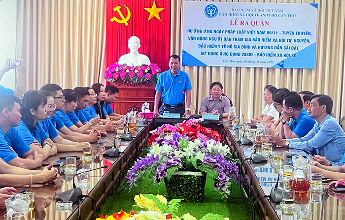 (CTO) - នាព្រឹកថ្ងៃទី 9 ខែវិច្ឆិកា ឆ្នាំ 2025 ទីក្រុង Can Tho ធានារ៉ាប់រងសង្គម (SI) បានរៀបចំពិធីបើកដំណើរការអនឡាញ ដើម្បីឆ្លើយតបនឹងទិវាច្បាប់វៀតណាម (ថ្ងៃទី 9 ខែវិច្ឆិកា) ផ្សព្វផ្សាយ និងកៀរគរប្រជាជនឱ្យចូលរួមក្នុងការធានារ៉ាប់រងសង្គមស្ម័គ្រចិត្ត ការធានារ៉ាប់រង សុខភាព គ្រួសារ (HI) និងដំឡើង និងប្រើប្រាស់កម្មវិធី VssID - លេខធានារ៉ាប់រងសង្គម។