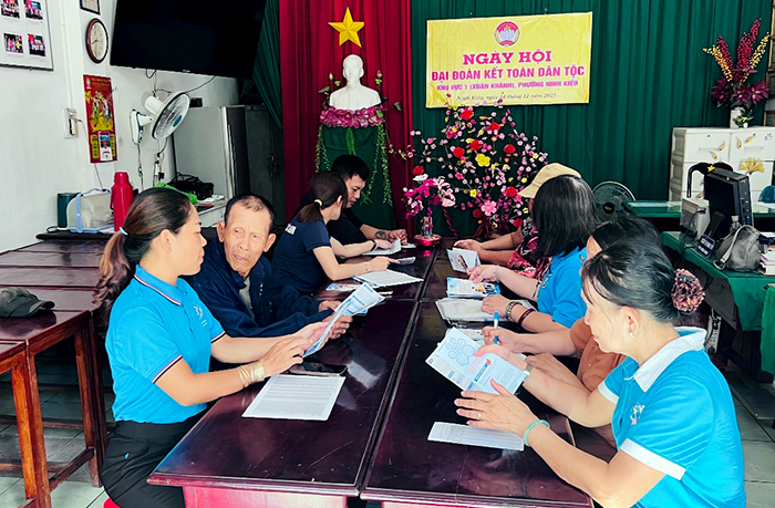 មន្ត្រីធានារ៉ាប់រងសង្គម និងអង្គការសេវាកម្មទីក្រុងបានប្រមូលផ្តុំប្រជាជនក្នុងវួដ Ninh Kieu ដើម្បីចូលរួមក្នុងការធានារ៉ាប់រងសង្គមដោយស្ម័គ្រចិត្ត និងធានារ៉ាប់រងសុខភាពគ្រួសារ។