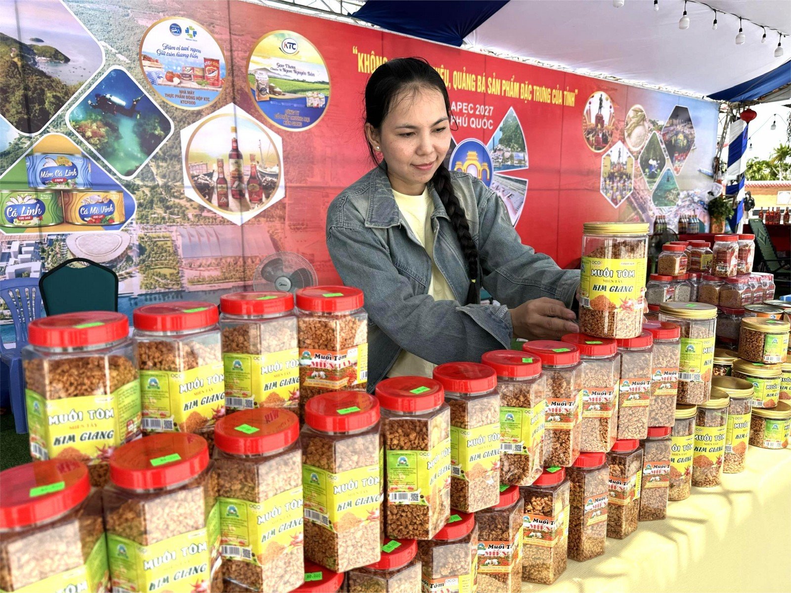 នៅស្តង់ OCOP Kien Giang លោកស្រី Nguyen Thi Yen My បុគ្គលិកហាងបាននិយាយថា ស្តង់បានប្រមូលផ្តុំផលិតផល OCOP ធម្មតាជាង 200 ពីឃុំ សង្កាត់ និងតំបន់ពិសេសក្នុងខេត្ត និងផលិតផលធម្មតារបស់ An Giang។ អ្នកទស្សនាអាចរីករាយ និងទិញវាជាកាដូ។