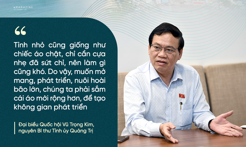 ថ្លែងទៅកាន់ VietNamNet លោក Vu Trong Kim តំណាងរដ្ឋសភា និងជាអតីតលេខាគណៈកម្មាធិការបក្សខេត្ត Quang Tri បានមានប្រសាសន៍ថា ការរួមបញ្ចូលគ្នានៃខេត្តនានា គឺដើម្បីបង្កើតធនធានបន្ថែមទៀតសម្រាប់ការទម្លាយភាពទាល់ច្រក។