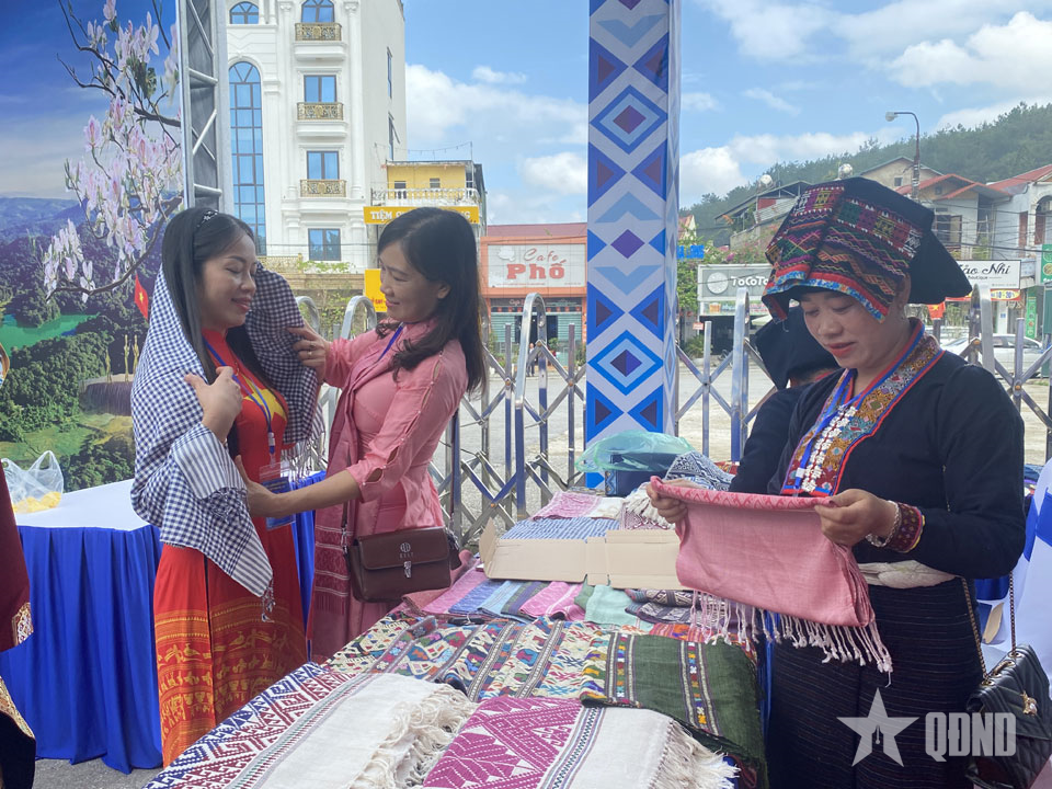 ស្តង់តាំងពិព័រណ៍ដាក់តាំងបង្ហាញផលិតផលវាយនភណ្ឌចរណ៍មកពីខេត្តឌៀនបៀន។ |