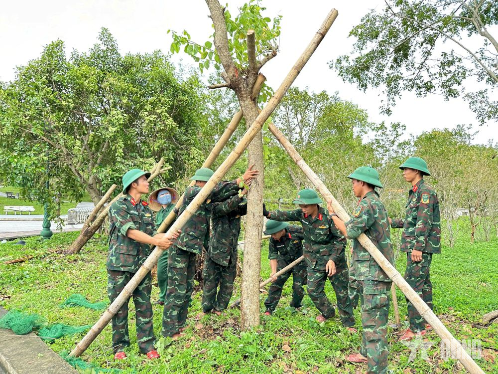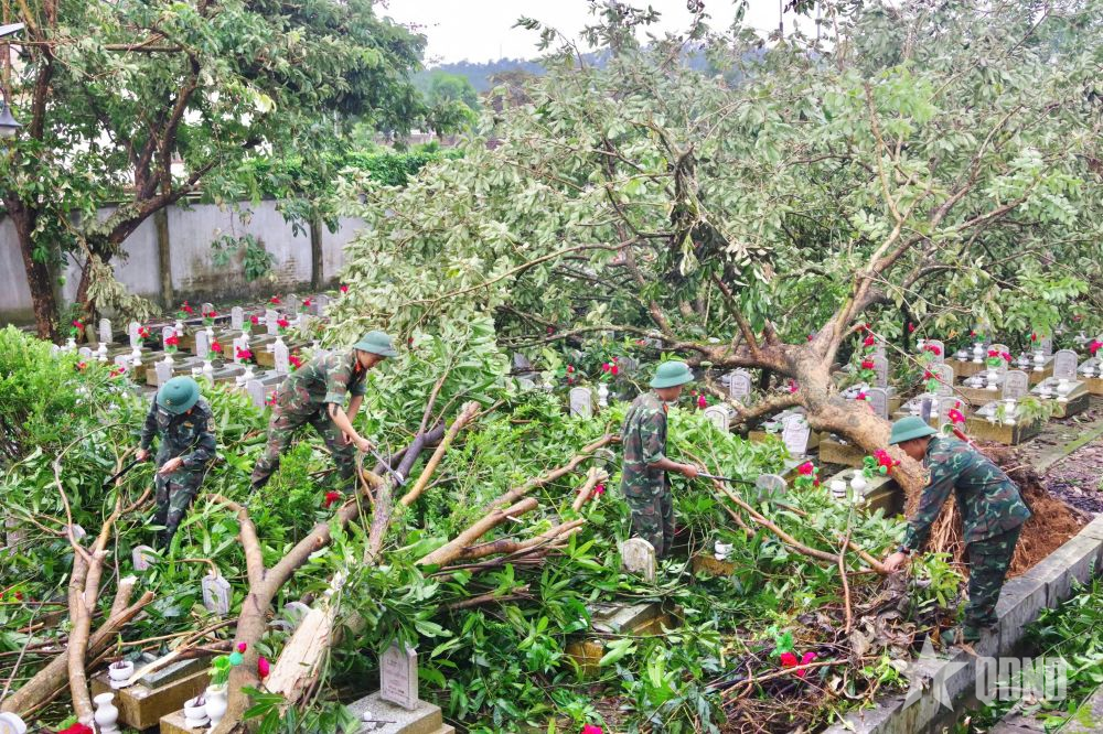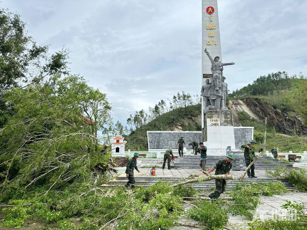ខ្យល់ព្យុះលេខ១០បានបាក់ដើមឈើជាច្រើន ប៉ើងដំបូលផ្ទះសម្ភារសំណង់មួយចំនួន ប៉ះពាល់យ៉ាងធ្ងន់ធ្ងរដល់ទេសភាព និងកន្លែងគោរពវិញ្ញាណក្ខន្ធ។ ក្រោយខ្យល់ព្យុះភ្លាម កងពលធំលេខ៣២៤ បានចល័តកម្លាំងភ្លាមៗ សម្របសម្រួលជាមួយអាជ្ញាធរមូលដ្ឋាន និងគណៈគ្រប់គ្រងទីបញ្ចុះសព និងទីបញ្ចុះសព ដើម្បីអនុវត្តការងារស្តារឡើងវិញ តាមពាក្យស្លោក «បន្ទាន់ សុវត្ថិភាព ប្រសិទ្ធភាព»។