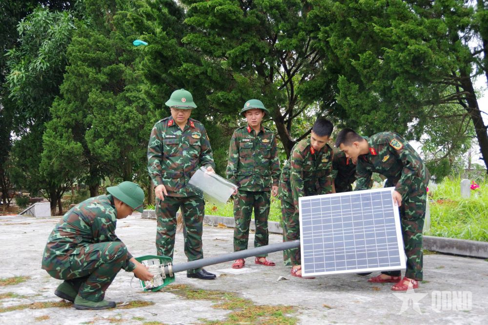 មន្ត្រី និងយោធិននៃកងវរសេនាតូចលេខ១៨ កងពលលេខ៣២៤ ជួសជុលបង្គោលភ្លើងដែលបាក់នៅទីបញ្ចុះសពយុទ្ធជនវៀតណាម-ឡាវ ឃុំ Do Luong (Nghe An)។ |