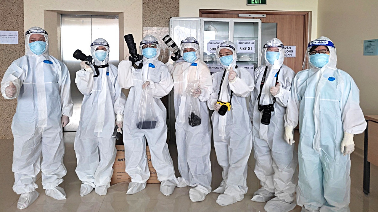 អ្នកយកព័ត៌មាន និងអ្នកយកព័ត៌មានកាសែត Tuoi Tre នៅទីក្រុងហូជីមិញ ធ្វើការនៅមន្ទីរពេទ្យព្យាបាលអ្នកជំងឺកូវីដ-១៩ (មន្ទីរពេទ្យ Oncology សាខាទី២) - រូបថត៖ HANH NGUYEN