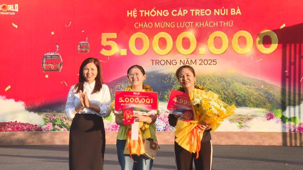 តាមនោះ លោកស្រី Do Thi Thanh Ha មកពីទីក្រុង ហូជីមិញ បានក្លាយជាភ្ញៀវទេសចរណ៍ទី ៥ លាននាក់ ដែលបានជិះរថយន្តខ្សែកាបក្នុងឆ្នាំ ២០២៥ នៅភ្នំ Sun World Ba Den។