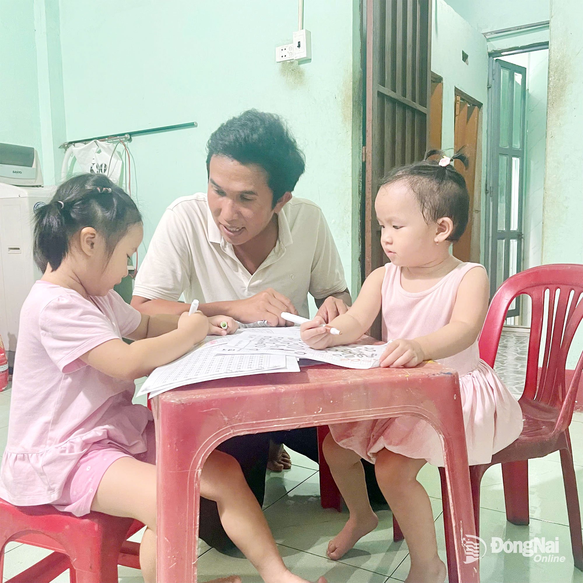 នៅផ្ទះខ្វះដៃស្ត្រីជារៀងរាល់ព្រឹកឬរសៀល លោក ដេត ម្នាក់ឯងមើលថែកូនស្រី និងប្អូនស្រី។ រូបថត៖ Thu Hien |