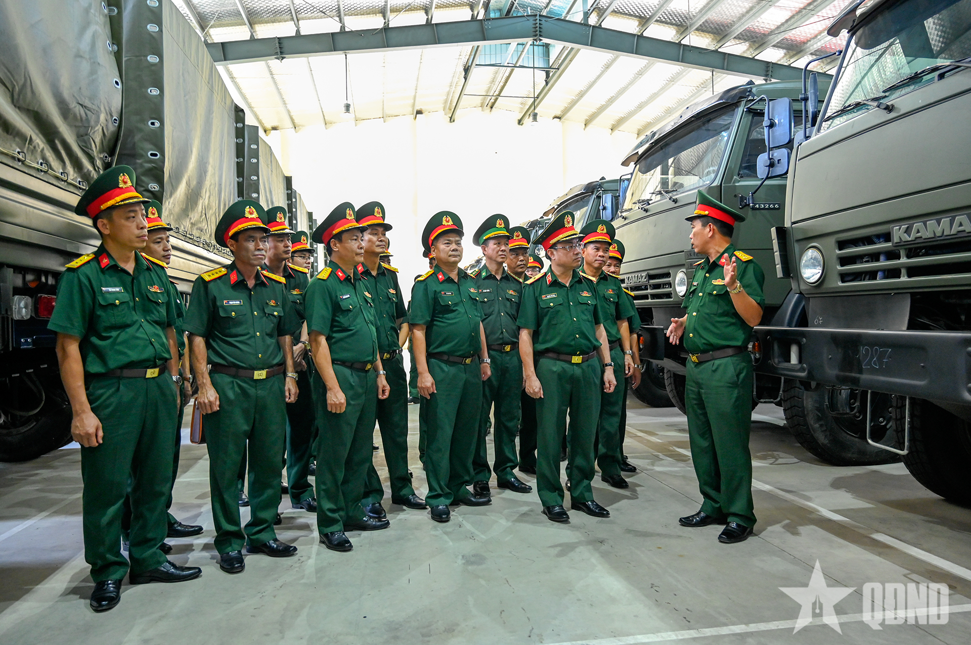 ឧត្តមសេនីយ៍ឯក Nguyen Que Lam ប្រធាននាយកដ្ឋានទោចក្រយានយន្ត និងដឹកជញ្ជូន និងគណៈប្រតិភូបានចុះត្រួតពិនិត្យឃ្លាំងរបស់ឃ្លាំង J106។ |