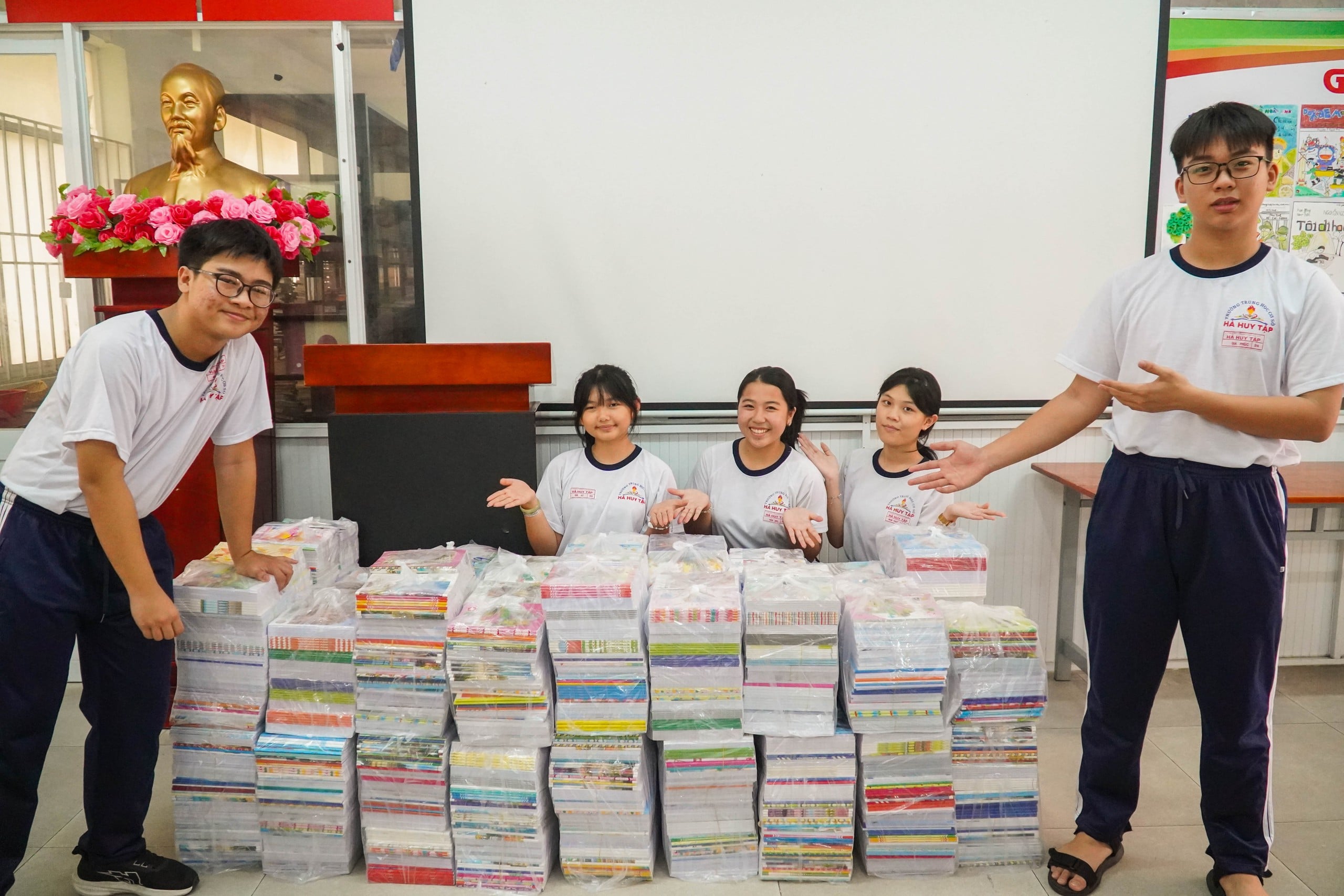 ត្រឹមតែប៉ុន្មានថ្ងៃប៉ុណ្ណោះ សាលាអនុវិទ្យាល័យ Ha Huy Tap (ឃុំ Ba Diem ទីក្រុងហូជីមិញ) បានប្រមូលសៀវភៅទទេបានជាង ៤២០០ ក្បាល ថវិកា ១០ លានដុង និងឧបករណ៍សិក្សាជាច្រើន។ សៀវភៅកត់ត្រា និងអំណោយទាំងអស់នឹងត្រូវបញ្ជូនទៅកម្មវិធី "ប្រមូលសៀវភៅកត់ត្រាសម្រាប់សិស្សានុសិស្សនៅតំបន់រងគ្រោះដោយគ្រោះមហន្តរាយ" របស់កាសែត Nguoi Lao Dong នៅថ្ងៃទី 4 ខែធ្នូ។