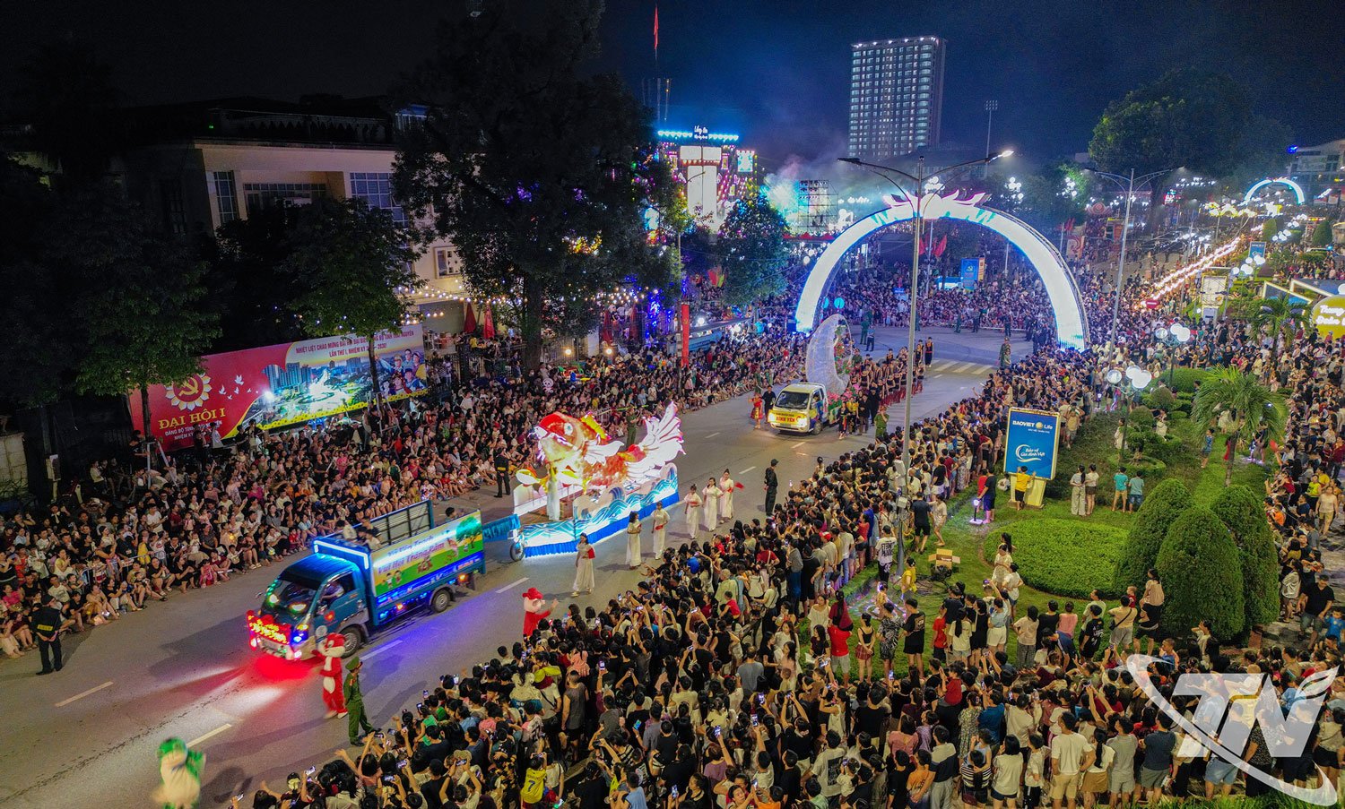 * នៅទីលានវប្បធម៌ (វួដ Bac Kan) កម្មវិធី "រីករាយពិធីបុណ្យពាក់កណ្តាលរដូវស្លឹកឈើជ្រុះ - រាត្រីពិធីបុណ្យព្រះច័ន្ទពេញបូណ៌មី" បានឈានចូលដល់រាត្រីទីពីរ រួមទាំងការសម្តែងសិល្បៈដ៏រស់រវើក និងទាក់ទាញ និងសកម្មភាពដ៏មានអត្ថន័យជាច្រើន ជាពិសេសការដាក់បង្ហាញគំរូចង្កៀងពាក់កណ្តាលសរទរដូវចំនួន 33 នៃឃុំ និងសង្កាត់ភាគខាងជើង។