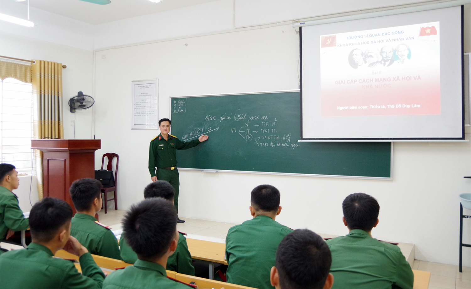ជាមួយនឹងលក្ខណៈនៃសាលាហ្វឹកហ្វឺនមន្ត្រីប្រយុទ្ធ របៀបបង្កើតម៉ោងទស្សនវិជ្ជា មិនមែនជាអ្វីដែលអរូបី និងឆ្ងាយនោះទេ ប៉ុន្តែមូលដ្ឋាននៃទស្សនៈពិភពលោក និងវិធីសាស្រ្តសម្រាប់សិស្សានុសិស្សក្នុងការយល់ឃើញត្រឹមត្រូវ និងធ្វើសកម្មភាពបានត្រឹមត្រូវក្នុងបរិយាកាសដ៏អាក្រក់បំផុត គឺជាកង្វល់ដ៏ធំបំផុតរបស់មេទ័ព Do Duy Lam ។ “បាឋកថារបស់ខ្ញុំត្រូវតែបំពេញតាមលក្ខណៈវិនិច្ឆ័យសង្ខេប និងងាយយល់ ខណៈពេលដែលនៅតែធានាបាននូវជម្រៅ វិទ្យាសាស្ត្រ ។ ខ្ញុំត្រូវតែប៉ិនប្រសប់បំប្លែងគំនិតទៅជាសកម្មភាពជាក់ស្តែង ជួយសិស្សឱ្យមានភាពខ្ជាប់ខ្ជួនក្នុងការប្រឈមមុខនឹងការលំបាក និងមានភាពខ្ជាប់ខ្ជួនក្នុងការប្រឈមមុខនឹងកិច្ចការពិសេស។ ក្នុងពេលជាមួយគ្នានេះ ខ្ញុំត្រូវតែស្វែងរកវិធីបង្កើតចំណាប់អារម្មណ៍សម្រាប់សិស្ស។ ដូច្នេះ ដើម្បីប្តូរទៅមុខវិជ្ជាទ្រឹស្ដីដែលមិនស្ងួត យើងត្រូវប្ដូរពីទ្រឹស្តីមកជាការអនុវត្តប្រយុទ្ធ ដោយភ្ជាប់ផ្ទាល់ទៅនឹងសកម្មភាពរបស់សិស្ស»។