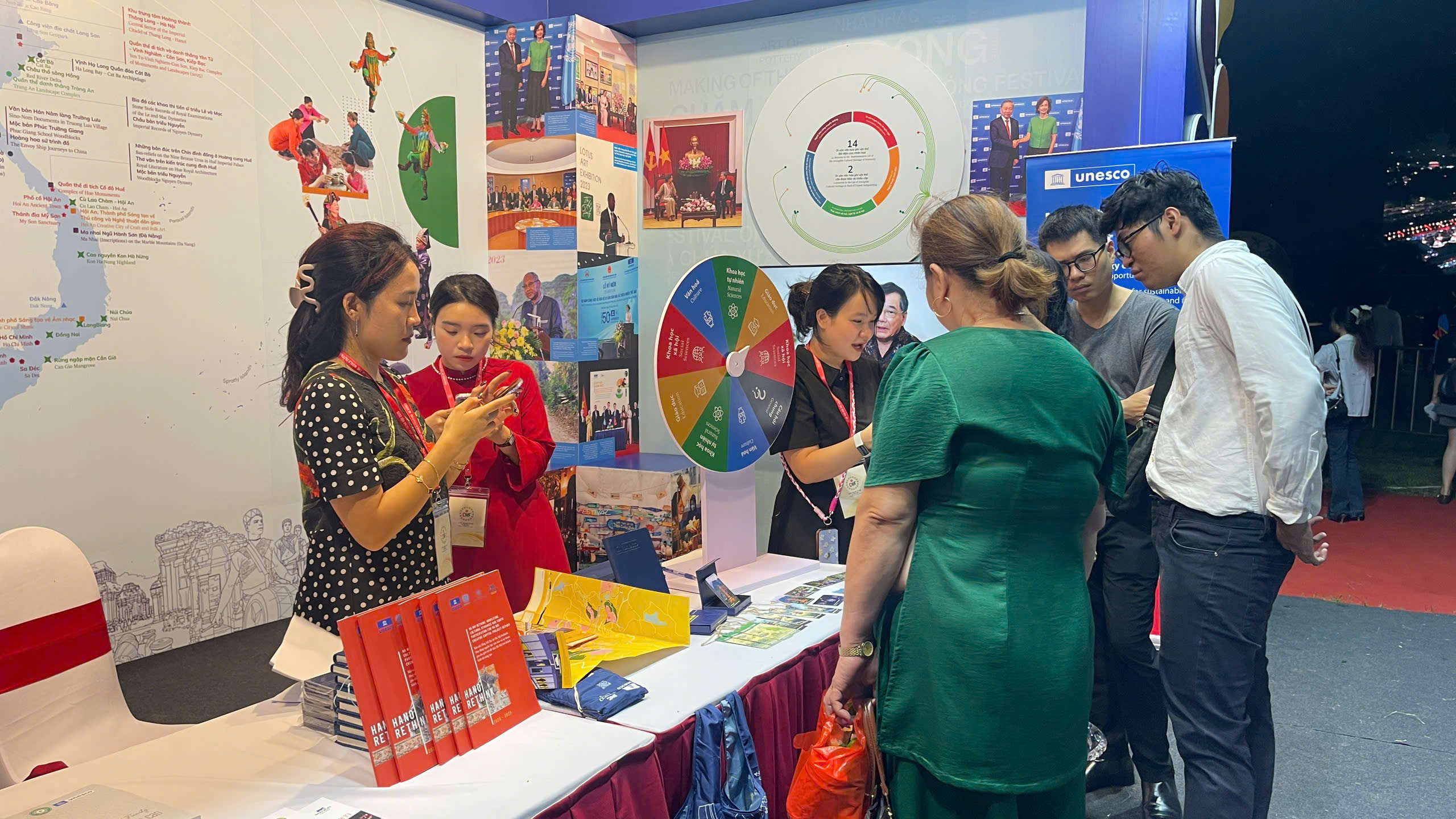 សាធារណជនទស្សនាស្តង់នៅមហោស្រពវប្បធម៌ពិភពលោកហាណូយ។ រូបថត៖ មិញភឿង