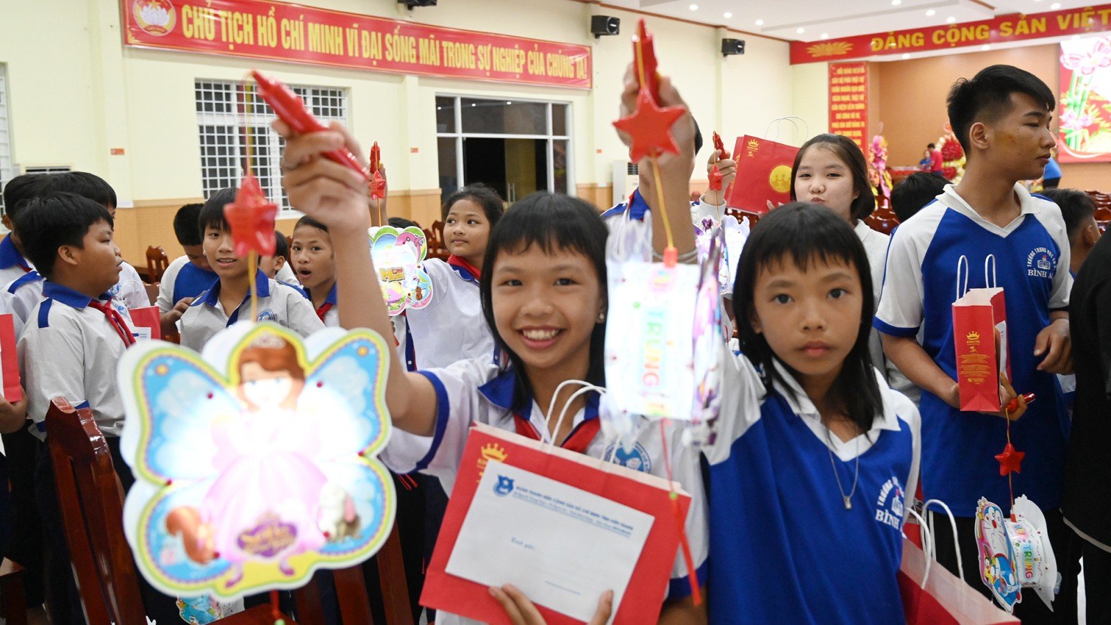 ក្នុងឱកាសនេះ សម្ព័ន្ធយុវជនខេត្តបានប្រគល់អំណោយពាក់កណ្តាលសរទរដូវចំនួន 100 (រួមទាំងនំខេក គោម និងថវិកា) ដល់កូនក្មួយកម្មករ កម្មការិនីនៅឃុំ Binh An។