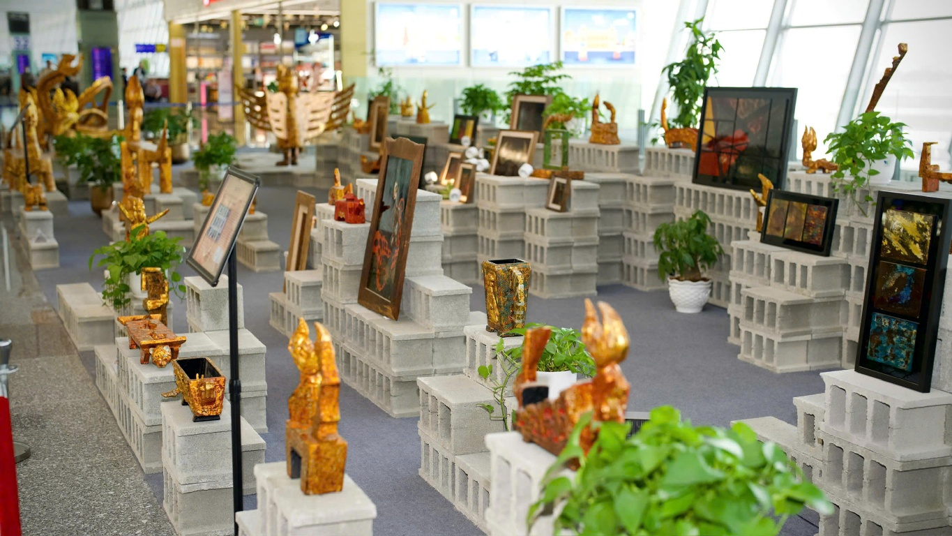| ស្នាដៃសិល្បៈមួយចំនួននៅក្នុងការតាំងពិព័រណ៍សិល្បៈប្រពៃណីដែលបានប្រារព្ធឡើងនៅស្ថានីយលេខ 2 ណយបៃ។ រូបថត៖ NIA |