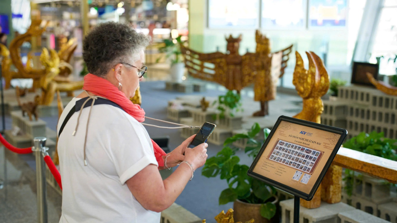 ចំណុចលេចធ្លោគឺរូបចម្លាក់ឈើលាបពណ៌ទ្រង់ទ្រាយធំពីរ ដែលមានចំណងជើងថា "កូនចៅរបស់នាគ និងអមតៈ"។ នៅក្នុងទីធ្លាតាំងពិព័រណ៍ អ្នកទស្សនានឹងបោះជំហានចូលទៅក្នុងពិភពនៃគំនូរលាបពណ៌ ជាកន្លែងដែលសម្ភារៈលាបពណ៌ប្រពៃណីវៀតណាម និងសិប្បកម្មដ៏ប្រណិតត្រូវបានប្រារព្ធឡើង ដែលបង្កើតភាពផ្ទុយគ្នាគួរឱ្យចាប់អារម្មណ៍រវាងភាពឧឡារិកនៃបេតិកភណ្ឌ និងភាពអ៊ូអរនៃអាកាសចរណ៍ទំនើប។