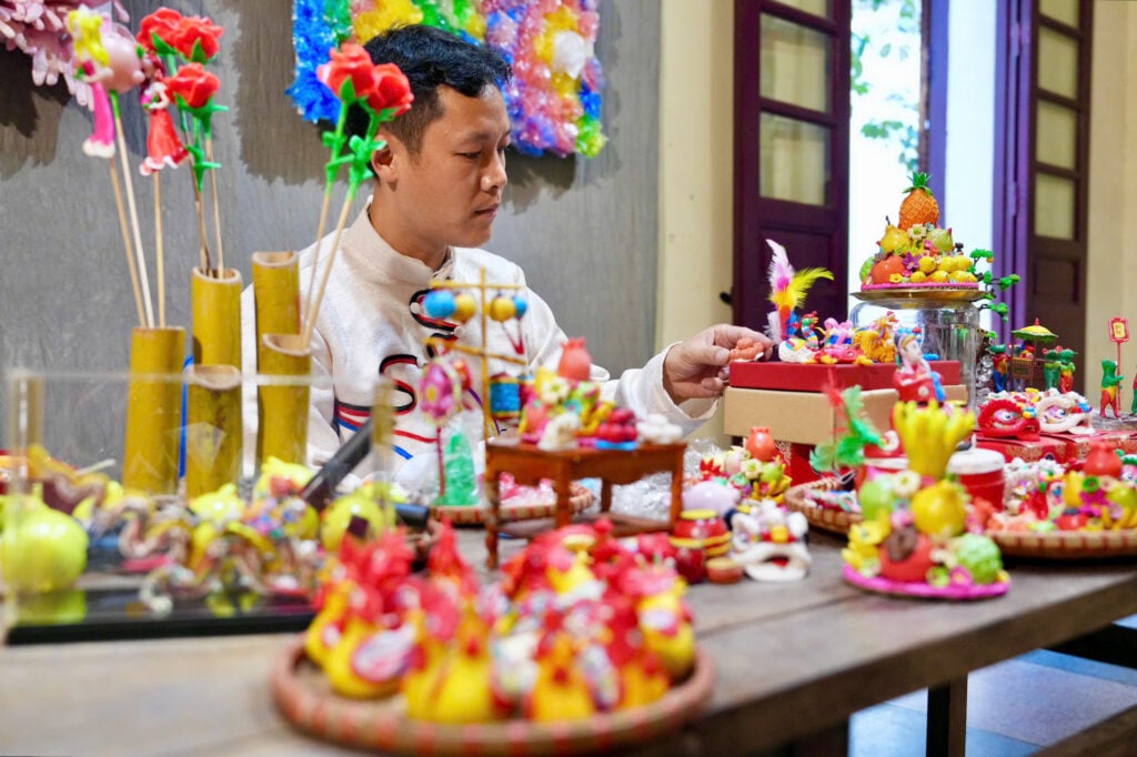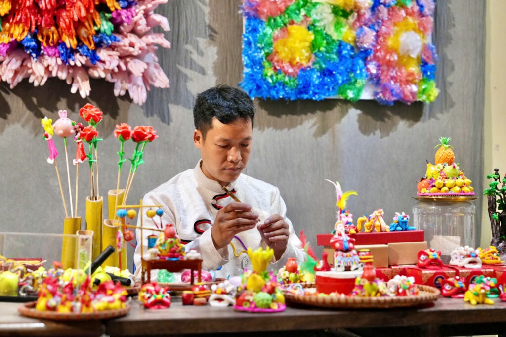 រូបចម្លាក់ម្សៅអង្ករចម្រុះពណ៌ទាក់ទាញបេះដូងកុមារ។ រូបថត៖ Duy Khanh/The Hanoi Times