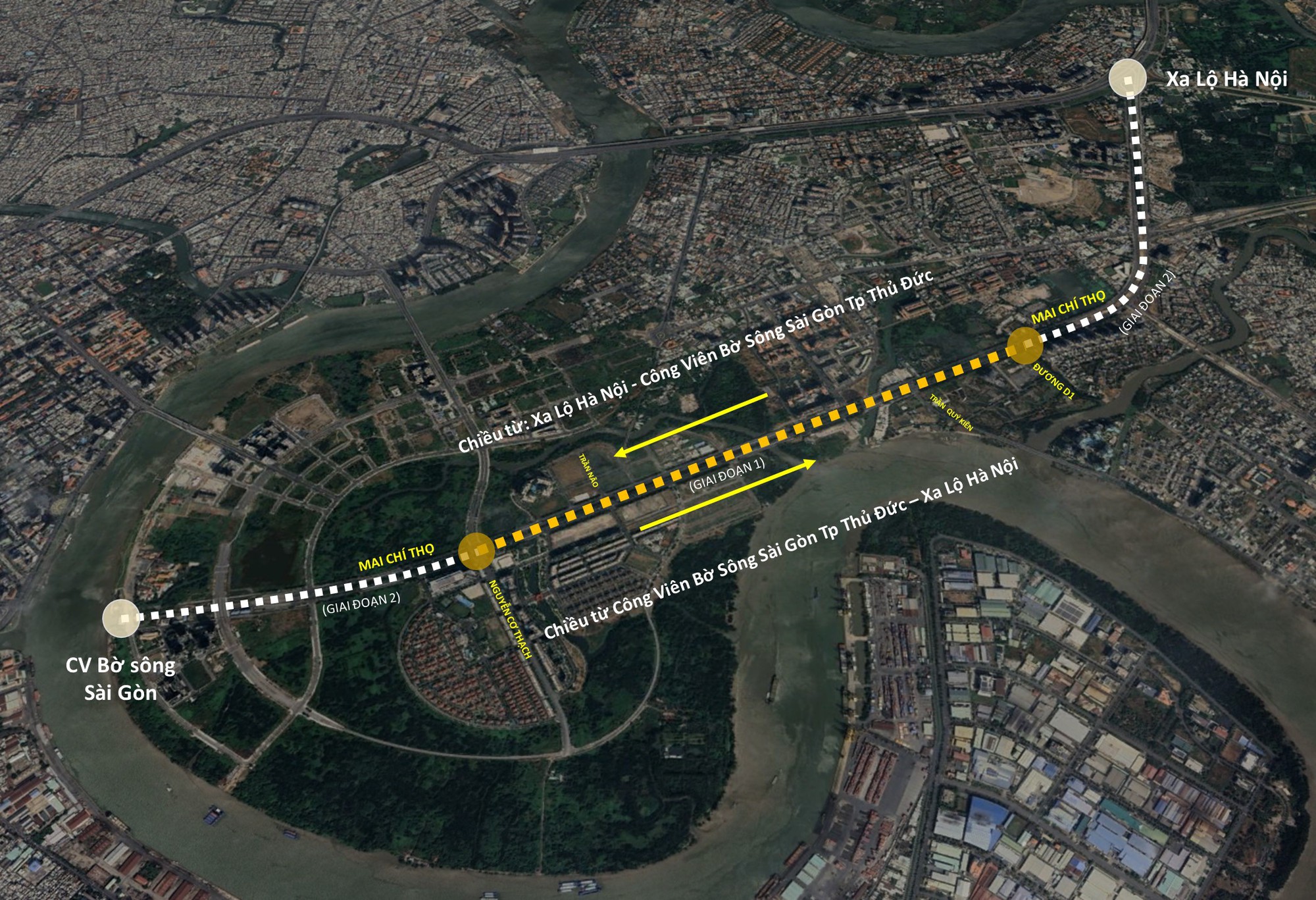 ដោយពន្យល់ពីជម្រើសនៃផ្លូវ Mai Chi Tho ជាកន្លែងដំបូងសម្រាប់រៀបចំគន្លងដាច់ដោយឡែកសម្រាប់កង់ លោក Tan បានមានប្រសាសន៍ថា ផ្លូវនេះមានហេដ្ឋារចនាសម្ព័ន្ធស្របគ្នា ច្រករបៀងធំទូលាយគ្រប់គ្រាន់ដើម្បីបង្កើតផ្លូវដាច់ដោយឡែកសម្រាប់កង់។ ក្នុងដំណាក់កាលទីមួយ គម្រោងនេះភ្ជាប់តំបន់លំនៅឋានចំនួន 3 រួមមាន Sala, New City និង The Sun Avenue និងមជ្ឈមណ្ឌលពាណិជ្ជកម្មធំៗ។
