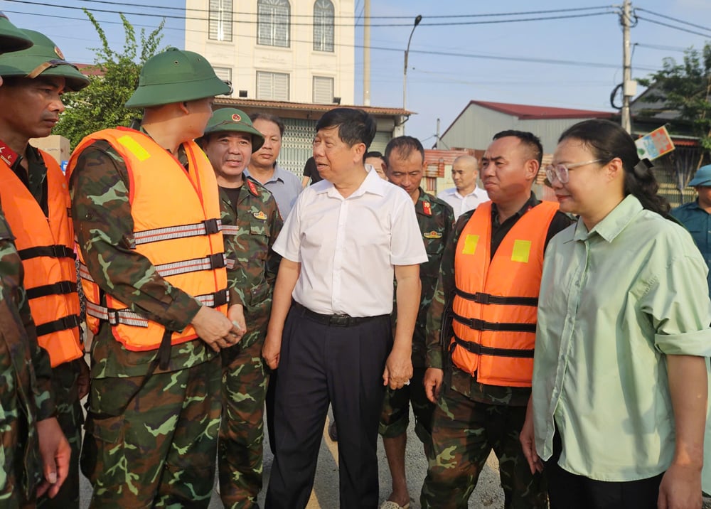 គណៈប្រតិភូបានចុះសួរសុខទុក្ខ និងលើកទឹកចិត្តដល់កងកម្លាំងដែលកំពុងបំពេញភារកិច្ចជួយប្រជាពលរដ្ឋក្នុងការជម្នះផលវិបាកនៃខ្យល់ព្យុះ និងទឹកជំនន់។ |