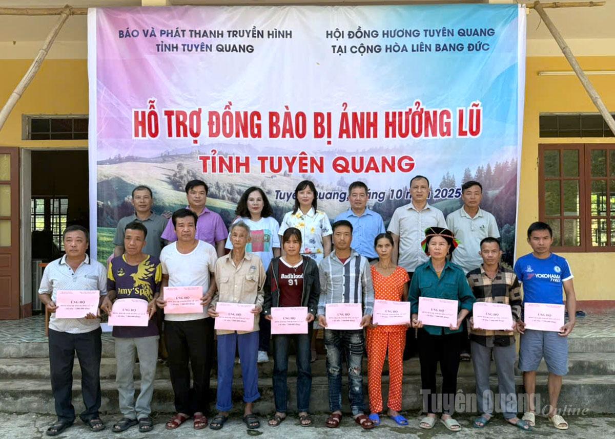 គណៈប្រតិភូបានផ្តល់ថវិកាចំនួន ៧,៥លានដុង ដល់គ្រួសារចំនួន១០។ ថវិកានេះត្រូវបានប្រើប្រាស់ដើម្បីជួយគ្រួសារក្រីក្រ និងជិតក្រីក្រដែលរងផលប៉ះពាល់ធ្ងន់ធ្ងរដោយព្យុះ និងទឹកជំនន់ជួសជុល និងសាងសង់ផ្ទះថ្មី។ តម្លៃសរុប ៧៥លានដុង ត្រូវបានឧបត្ថម្ភដោយសមាគម Tuyen Quang នៃសាធារណរដ្ឋសហព័ន្ធអាល្លឺម៉ង់។
