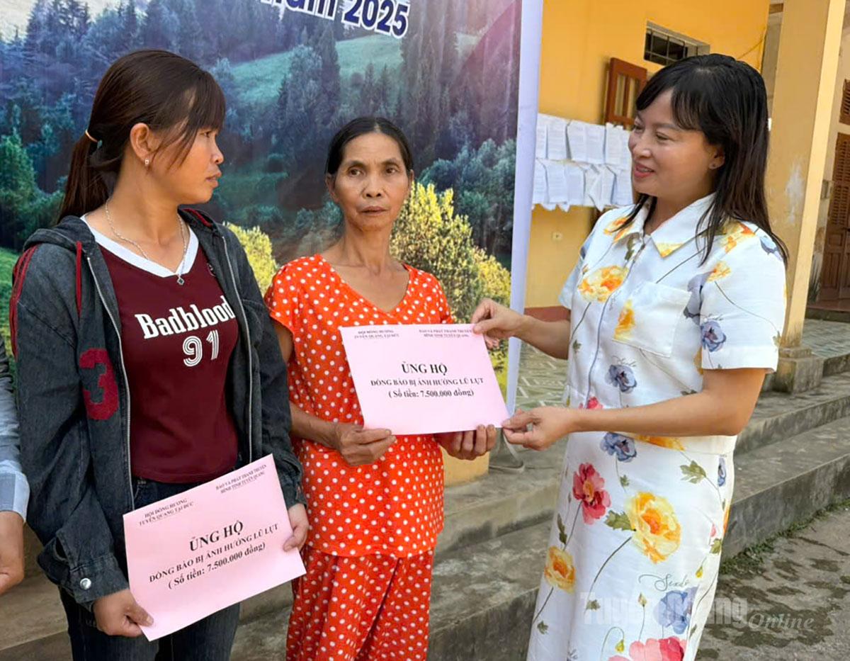 សមមិត្ត Ngo Thi Thu Ha និពន្ធនាយករងនៃកាសែត Tuyen Quang វិទ្យុ និងទូរទស្សន៍ បានប្រគល់ថវិកាឧបត្ថម្ភដល់ប្រជាជន។ |