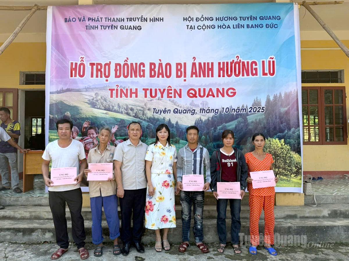 តំណាងអ្នកឧបត្ថម្ភសមាគម Tuyen Quang នៃសាធារណៈរដ្ឋសហព័ន្ធអាល្លឺម៉ង់បានប្រគល់ប្រាក់ឧបត្ថម្ភដល់ប្រជាជន។ |