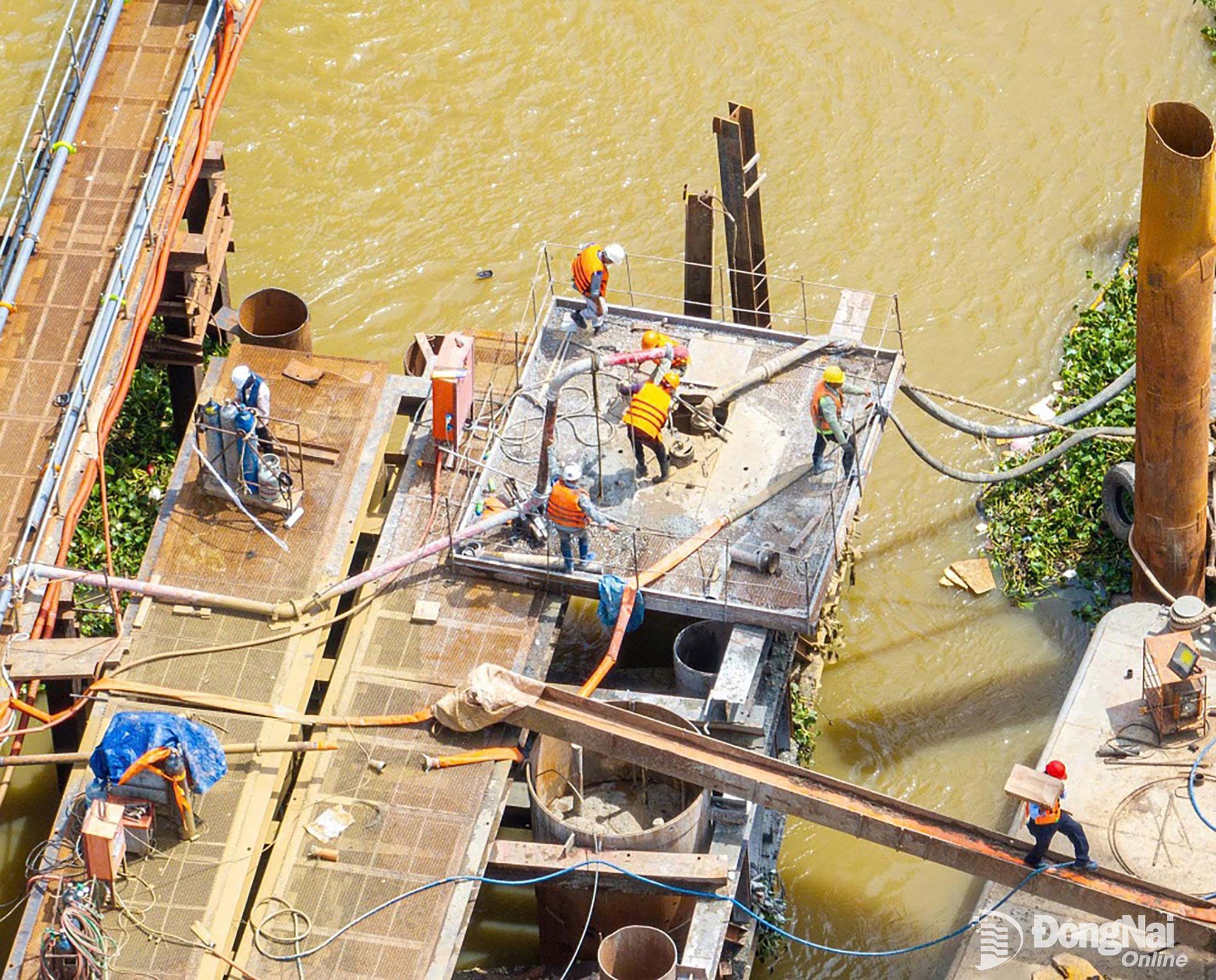 | ការងារសាងសង់លើបង្គោលស្ពាន Long Thanh ថ្មីកំពុងដំណើរការ។ រូបថត៖ Pham Tung |