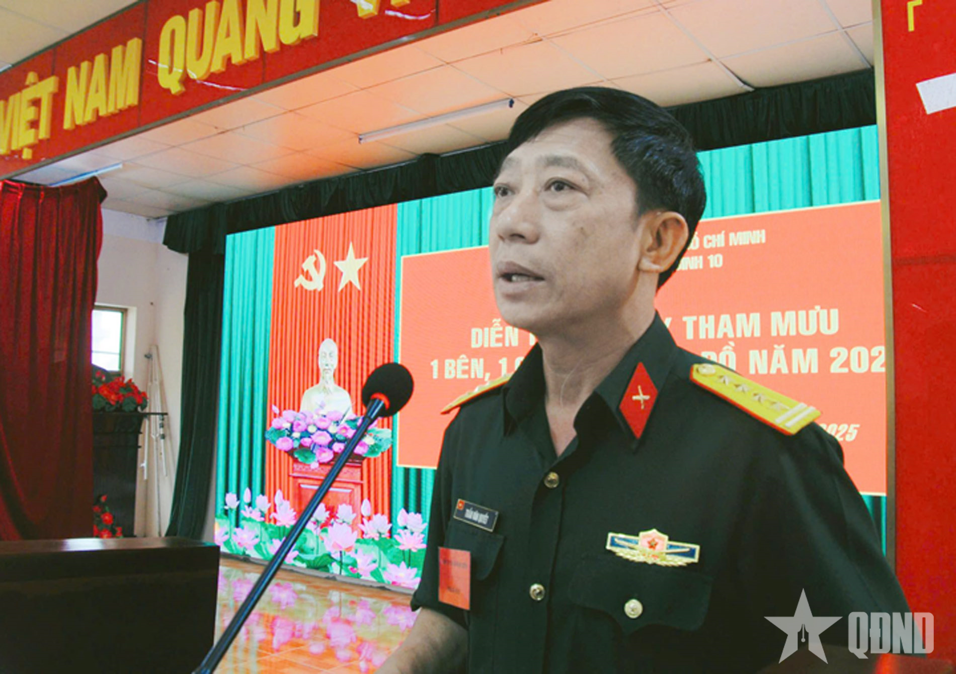 លោកវរសេនីយ៍ឯក Tran Van Quyet នាយរងសេនាធិការនៃទីបញ្ជាការទីក្រុង ហូជីមិញ បានមានប្រសាសន៍នៅក្នុងសមយុទ្ធ។ |