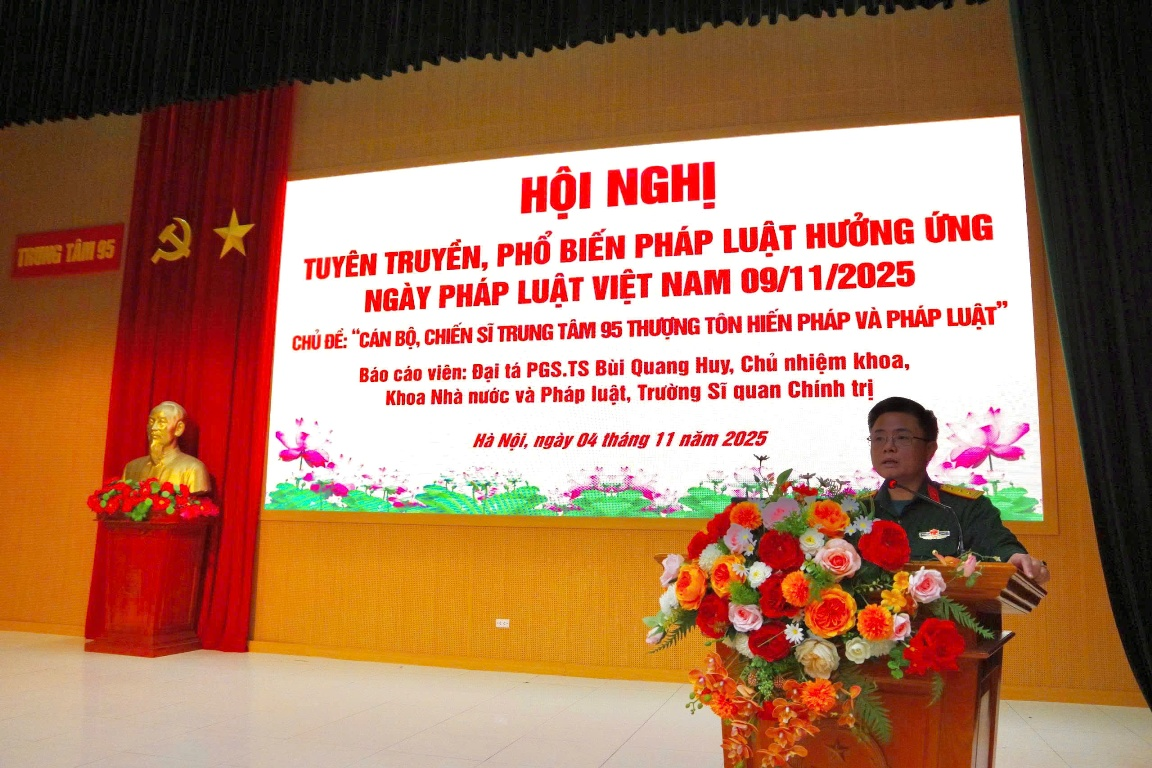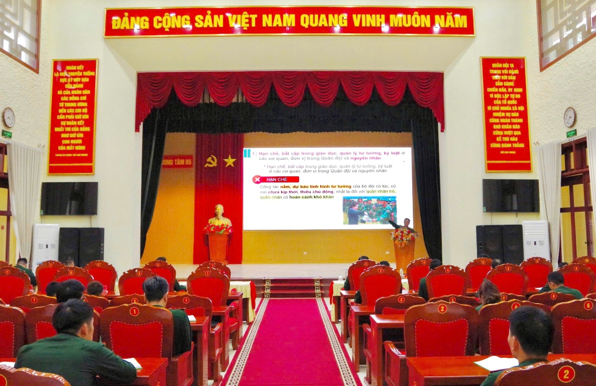 អញ្ជើញថ្លែងមតិក្នុងសន្និសីទនេះ លោកវរសេនីយ៍ឯក Nguyen Duc Chuyen លេខាបក្ស និងជាប្រធានគណៈកម្មាធិការនយោបាយមជ្ឈិមលេខ៩៥ បានសង្កត់ធ្ងន់ថា៖ ការឃោសនា ការផ្សព្វផ្សាយ និងការអប់រំច្បាប់គឺជាខ្លឹមសារសំខាន់ដែលមានអត្ថន័យយូរអង្វែងក្នុងការកសាងវិន័យ បណ្តុះបណ្តាលវិន័យ និងលើកកម្ពស់ការយល់ដឹងផ្នែកច្បាប់សម្រាប់យោធិន។