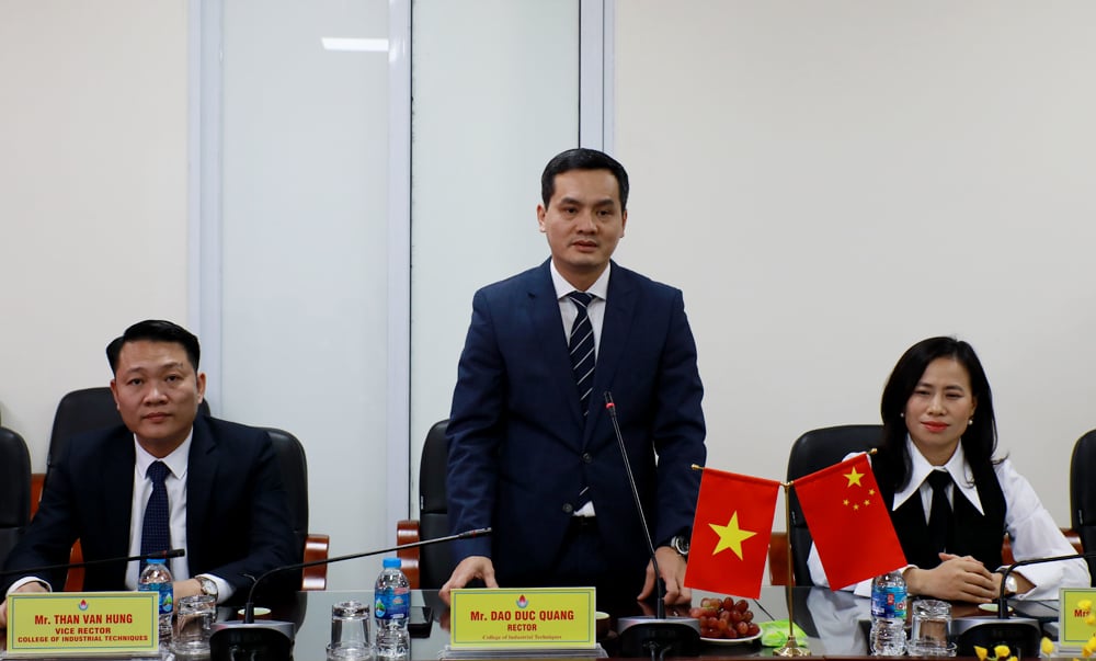 សមមិត្ត Dao Duc Quang នាយកមហាវិទ្យាល័យបច្ចេកទេសឧស្សាហកម្ម ថ្លែងមតិក្នុងពិធីចុះហត្ថលេខា។ |