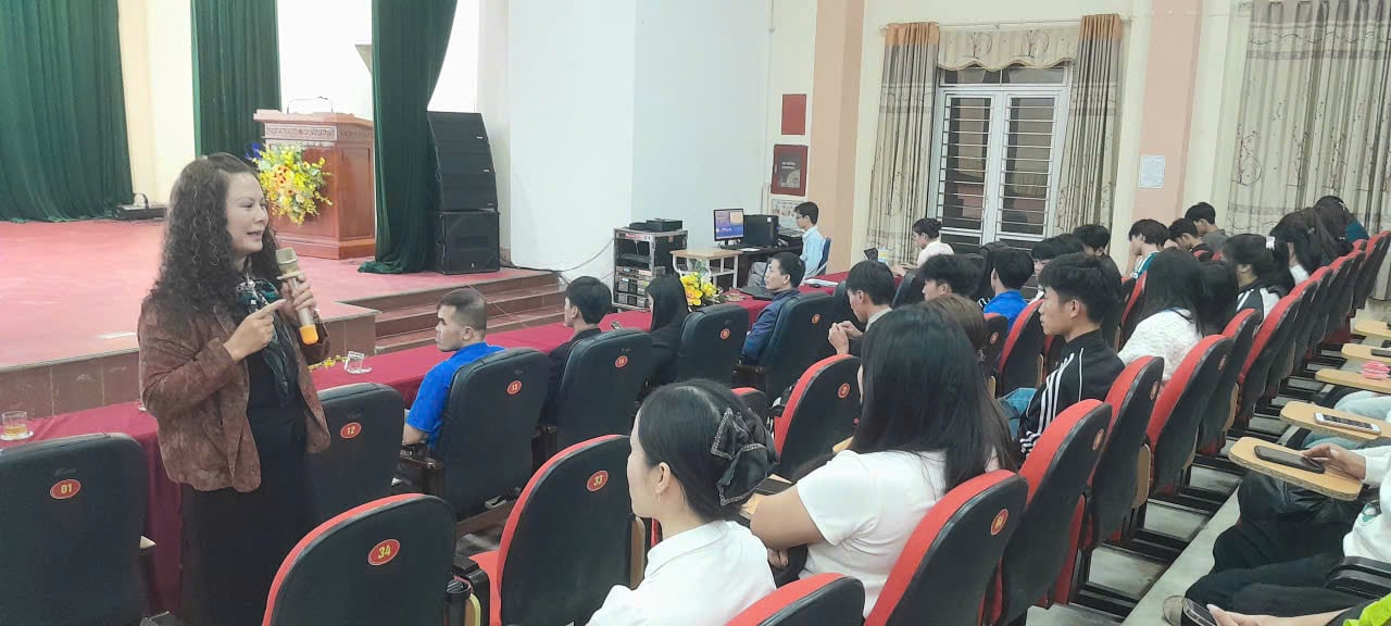 បុគ្គលិកមជ្ឈមណ្ឌលគ្រប់គ្រងជំងឺខេត្ត ផ្សព្វផ្សាយ ការអប់រំ សុខភាពបន្តពូជដល់និស្សិតនៃមហាវិទ្យាល័យ Lai Chau ។