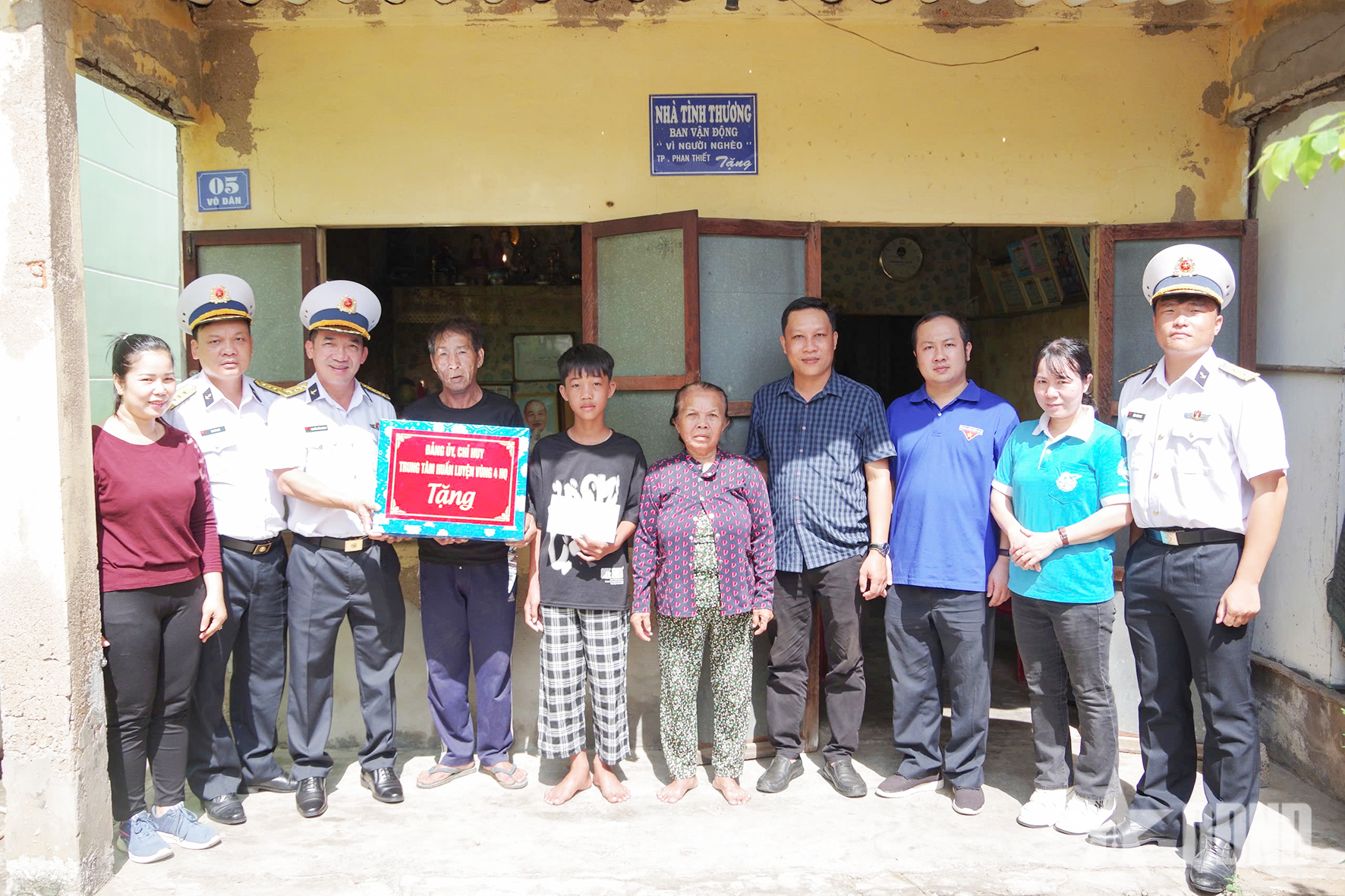 ការរំលេចដោយមនុស្សធម៌នៃតំបន់ទី ៤ គឺសកម្មភាព "កងទ័ពជើងទឹកឧបត្ថម្ភកូនអ្នកនេសាទ"។ ចាប់ពីឆ្នាំ 2023 ដល់បច្ចុប្បន្ន តំបន់ទាំងមូលបានសម្របសម្រួលជាមួយអាជ្ញាធរមូលដ្ឋាន ដើម្បីឧបត្ថម្ភដល់សិស្សានុសិស្សចំនួន 19 នាក់ ដែលជាកូនអ្នកនេសាទក្នុងគ្រាលំបាក ជាពិសេស។ ង្វៀន ថាញ់សាង (អាយុ ១៣ ឆ្នាំ រៀនថ្នាក់ទី ៨) គឺជាម្នាក់ក្នុងចំណោមពួកគេ។ ឪពុករបស់គាត់បានស្លាប់ពេលនៅសមុទ្រក្នុងឆ្នាំ 2018 ម្តាយរបស់គាត់បានចាកចេញទៅ Sang រស់នៅជាមួយជីដូនចាស់របស់គាត់នៅក្នុងផ្ទះសប្បុរសធម៌មួយក្នុងវួដ Phu Thuy ខេត្ត Lam Dong ។ សូមអរគុណដល់ជំនួយរបស់មជ្ឈមណ្ឌលហ្វឹកហ្វឺនកងទ័ពជើងទឹកភូមិភាគទី៤ លោក Sang បានយកឈ្នះលើភាពលំបាក ហើយបានបន្តទៅសាលារៀន។ នៅដើមឆ្នាំសិក្សានេះ តំណាងអង្គភាពបានចុះសួរសុខទុក្ខ លើកទឹកចិត្ត និងផ្តល់សម្ភារៈសិក្សាជាច្រើនដល់គាត់។ Sang បាននិយាយថា "ខ្ញុំនឹងព្យាយាមឱ្យអស់ពីសមត្ថភាពដើម្បីសិក្សាឱ្យបានល្អដើម្បីកុំឱ្យខកចិត្តចំពោះបេះដូងនិងអារម្មណ៍ដែលទាហានជើងទឹកបានផ្តល់ឱ្យខ្ញុំ" ។