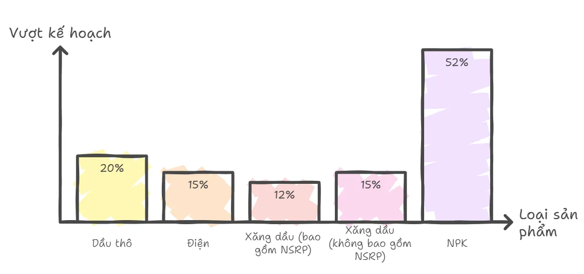 ជាពិសេសនៅក្នុងខែកញ្ញា ឆ្នាំ 2025 គោលដៅផលិតកម្មសំខាន់ៗទាំងអស់របស់ក្រុមបានលើសពីផែនការ 3-78% ។ ជាក់ស្តែង ការកេងប្រវ័ញ្ចប្រេងឆៅឈានដល់ ៨៣៩ ពាន់តោន លើសពីផែនការប្រចាំខែ ២៨%។ ទិន្នផលឧស្ម័នឈានដល់ 490 លាន m³ លើសពីផែនការ 12% ។ ផលិតកម្មអគ្គិសនីបានឈានដល់ 2.54 ពាន់លាន kWh ដែលជាការកើនឡើងបើប្រៀបធៀបទៅនឹងខែមុន។ វិស័យគីមីឥន្ធនៈបានបន្តដំណើរការប្រកបដោយប្រសិទ្ធភាព ដោយទិន្នផលប្រេងសាំង (មិនរាប់បញ្ចូល NSRP) ឈានដល់ ៦៨៨,២ពាន់តោន លើសពីផែនការ ២៤%។ ការផលិតអាសូត និង NPK ទាំងពីរបានកើនឡើងគួរអោយចាប់អារម្មណ៍។ NPK តែម្នាក់ឯងបានលើសពីផែនការប្រចាំខែ 29% ។ រោងចក្រអាសូត Ca Mau បានបញ្ចប់ការថែទាំជារួម 5 ថ្ងៃលឿនជាងការគ្រោងទុក។