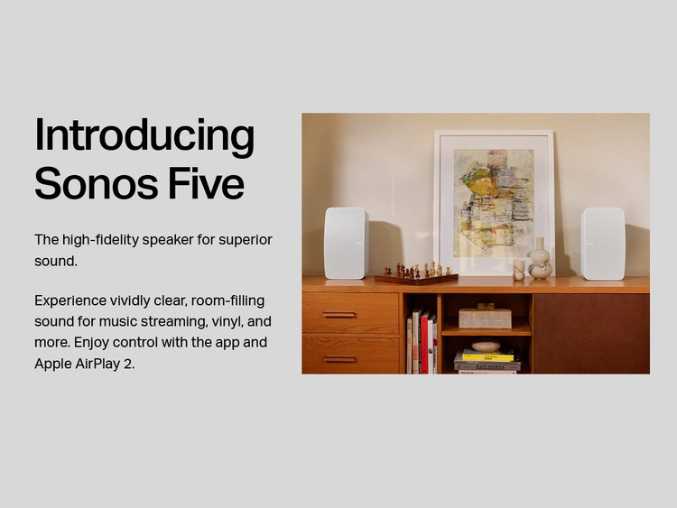 또한, 스피커에는 깊은 저음을 생성하는 3개의 우퍼와 측면에 위치한 2개의 트위터가 탑재되어 공간감과 풍부한 스테레오 사운드를 구현하여 몰입감 넘치는 경험을 선사합니다. 또 다른 흥미로운 점은 스피커 배치입니다. 스피커를 세로로 놓으면 Sonos Five는 자동으로 모노 사운드로 전환되고, 가로로 놓으면 스테레오 사운드를 제공합니다. Sonos 앱을 다운로드하여 모든 스트리밍 서비스에 연결하여 음악, 오디오북 등을 재생할 수도 있습니다.
