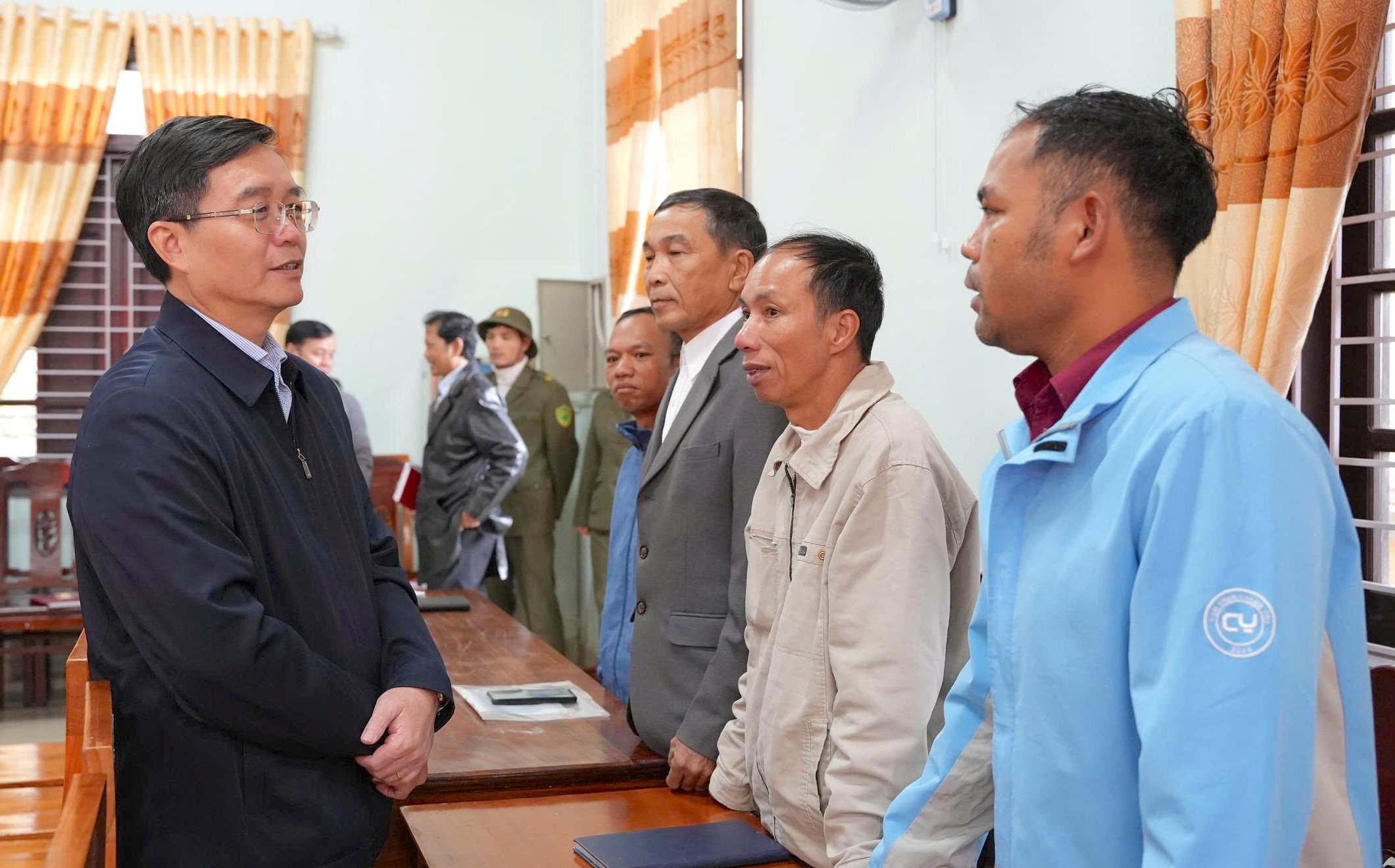 | 시당위원회 서기 Nguyen Dinh Trung이 시민들을 방문하여 대화했습니다. |