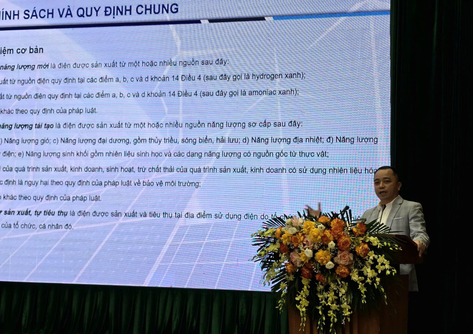 워크숍에서 산업통상부 전기국 부국장인 Tran Hoai Trang 씨는 다음과 같이 말했습니다. "정부는 2025년 5월 8일 전기법의 여러 조항을 자세히 기술한 법령 제58/2025/ND-CP호를 발표하여 재생 에너지와 신에너지 개발에 관한 내용을 담고 있으며, 자체 생산 및 자체 소비형 옥상 태양광 발전 설비에 대한 인센티브 정책을 수립하고 절차를 명확히 정의했습니다."