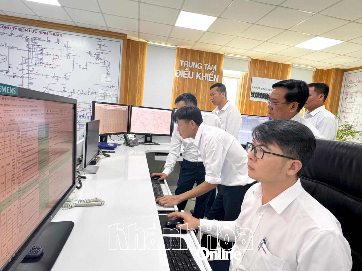 | 칸호아 전력회사의 리더와 기술 직원은 통제 센터에서 전력망 운영을 모니터링하고 홍수 사고를 처리합니다. |