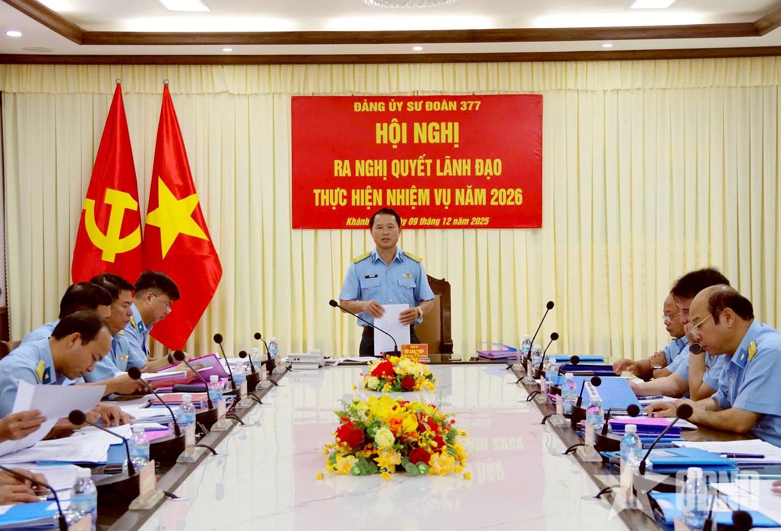회의에서 방공-공군 정무부 차장인 응오 꾸옥 청 소장은 2025년 377사단 당위원회의 성과를 인정하고 칭찬했습니다. 동시에 그는 앞으로 377사단 당위원회가 모든 계층의 지시, 명령 및 규정, 특히 전투 준비 임무와 영공 관리에 대한 전파와 엄격한 이행을 강화하기 위한 지도와 방향에 집중할 것을 요청했습니다. 모든 계층의 지휘소 전투원과 부대 전투원에 대한 훈련, 능숙한 훈련 및 상황 처리에 주의를 기울이고, 이념적 관리와 규율 관리를 강화하고 안전을 보장하며, 행정 개혁, 디지털 전환 및 "디지털 대중화" 운동을 지속적으로 촉진하고, 사단의 훈련 임무, 전투 준비 및 갑작스러운 임무를 위한 우수한 물류, 기술 및 재정 작업을 보장해야 합니다.