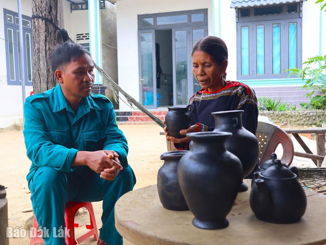 15세에 도자기 제작을 배운 동박 마을 출신의 H. 키엡 브크롱(H. Kiep Bkrong) 씨는 마을의 베테랑 도자기 장인이 되었습니다. 60세가 넘은 고령에도 불구하고 모든 도자기 교육 과정과 워크숍에 참여하고 있습니다. 그녀는 이렇게 말했습니다. "이전에는 므농(M'nong) 도자기는 무늬가 매우 단순했고, 때로는 무늬가 전혀 없는 경우도 있었습니다. 주로 밥그릇이나 물컵처럼 가정용품으로 쓰이는 간단한 제품들이었죠. 하지만 최근 지역에서 개최된 도자기 교육 과정에 참여하면서 많은 새로운 기법, 특히 국내외관광 시장의 수요를 충족하는 더욱 복잡한 도자기 무늬를 배우게 되었습니다."