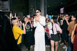 팬들이 공항에서 그녀를 기다리고 있을 때 기뻐하는 Ky Duyen의 영상:
