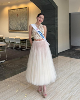 무대에서 탄 투이는 디자이너 부이 꽁 티엔 바오(Bui Cong Thien Bao)가 디자인한 "루아 낭 센(Lua nang sen)" 의상을 입었습니다. 이 의상은 실크 아오자이와 전통 직기를 결합한 것입니다. 공연에 맞춰 디자이너는 일부 디테일을 단순화하고 무게를 약 5kg으로 줄여 탄 투이가 무대에서 편안하게 움직일 수 있도록 했습니다. 다소 정교한 디자인에도 불구하고 탄 투이는 우아하고 능숙한 움직임을 자신 있게 선보였습니다.