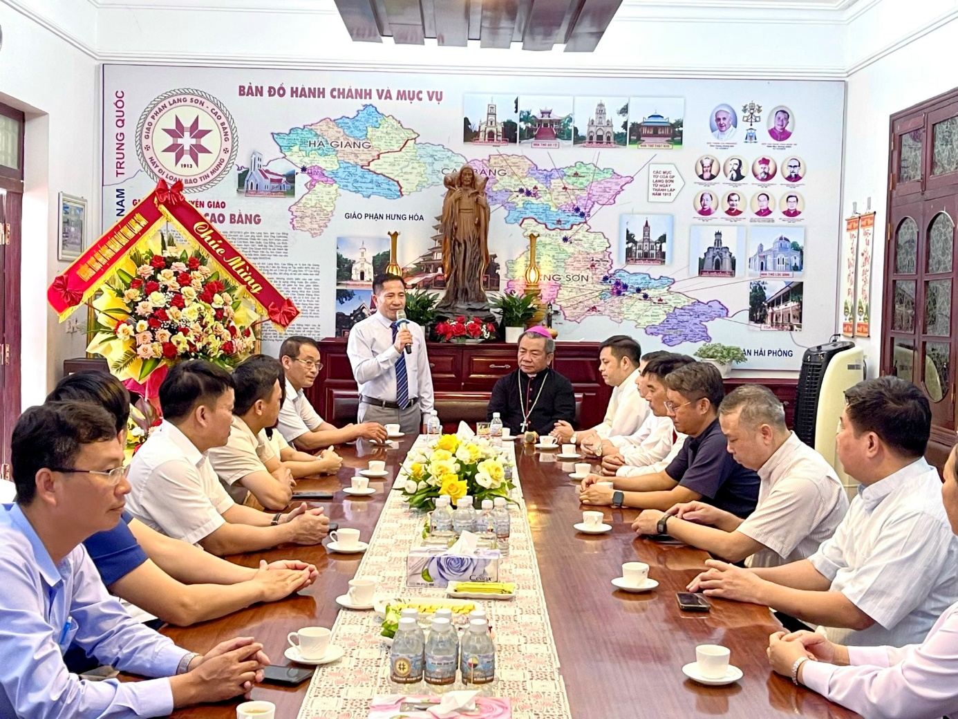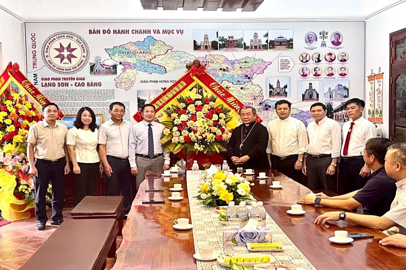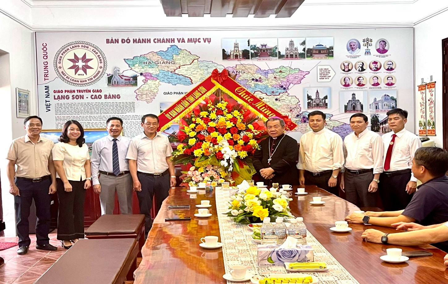랑선성 소수민족 및 종교국장인 팜득후안 동지는 랑선-까오방 교구의 수호성인 축일을 축하하기 위해 꽃을 전달했습니다.