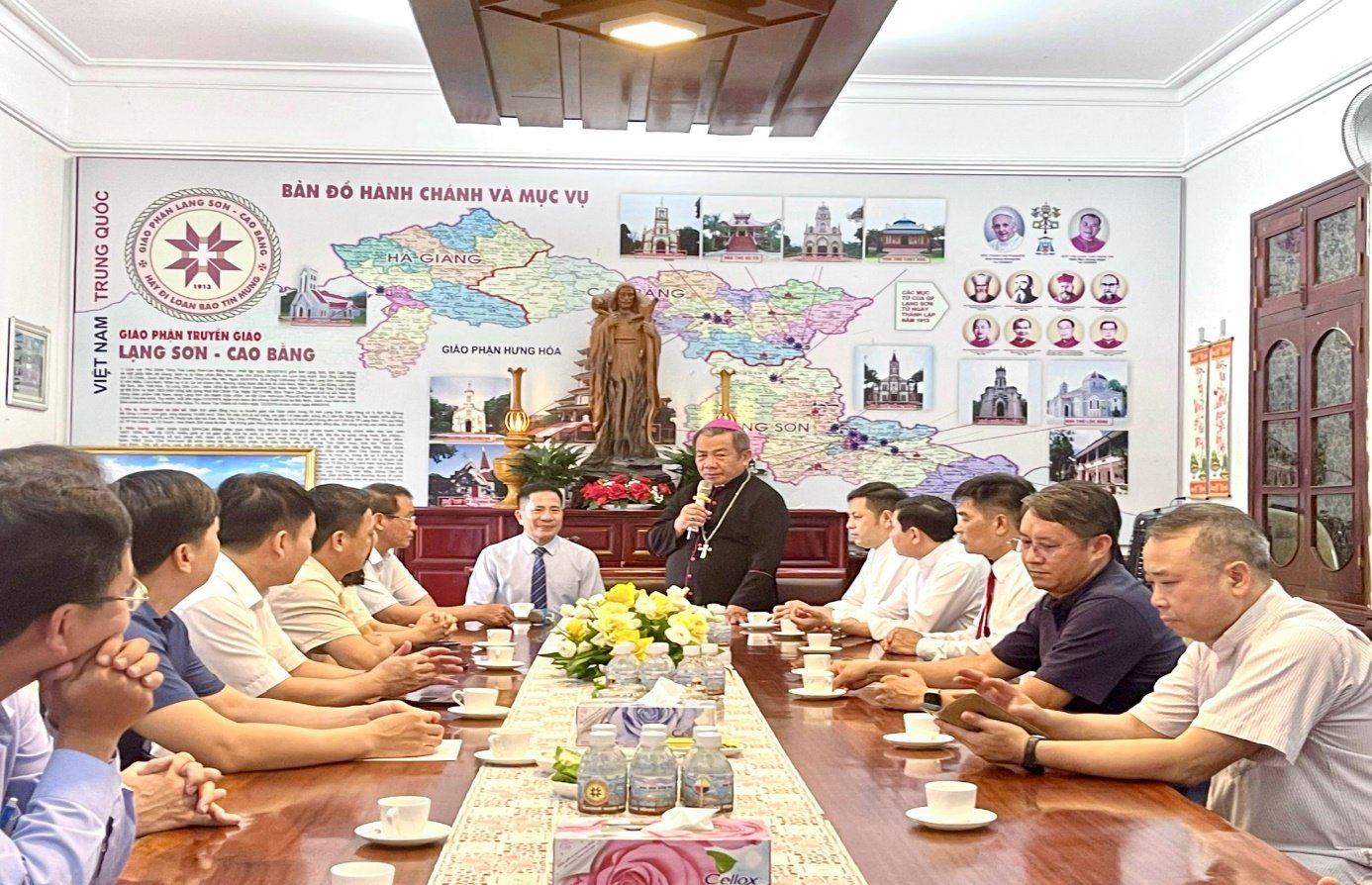 응우옌 반 쯔엉 동지 , 랑선성 인민위원회 부위원장, 도당위원회 위원께서는 2025년 상반기 사회 경제적 상황의 주요 내용을 알려 주셨습니다. 그는 가톨릭 고위 인사, 관리, 승려, 수녀, 평신도들이 지역의 사회경제적 발전, 자선 활동, 교육 및 의료에 기여한 공로를 인정하고 높이 평가하셨습니다. 그리고 앞으로도 고위 인사와 관리들이 추종자들을 지도하여 당의 지침과 정책, 종교 활동에서 국가의 법률을 잘 이행하고, 애국심 경쟁 운동에 적극적으로 참여하고, 새로운 농촌 지역을 건설하고, 문명화된 도시 지역을 건설하여 랑선을 건설하고 나라를 점점 더 번영하고 아름답게 만드는 데 기여하기를 바란다고 말씀하셨습니다 .