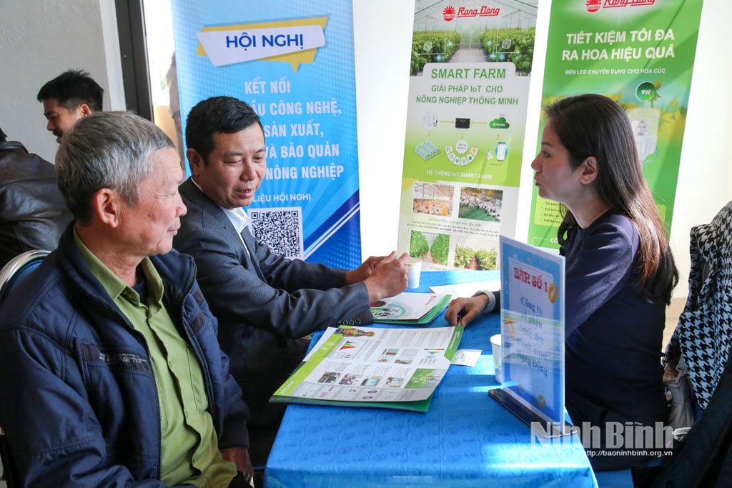 회의에 참석한 대표단은 Rang Dong Light Bulb and Vacuum Flask Joint Stock Company( 하노이 ), NAMI Agricultural Microbiological Technology Joint Stock Company(하노이), Nam Dai Duong Youth Cooperative(닌빈), ECOZONE Company Limited(하노이), Egreen Technology Joint Stock Company(하노이), Center for Microelectronics and Informatics Technology - Institute of Technology Application(하노이)에서 스마트 농업 생산의 기술 솔루션, 환경 처리, 황금 사과 달팽이에서 추출한 유기 비료 솔루션, 농산물을 전자 상거래 플랫폼으로 가져오는 솔루션 등을 소개하는 것을 들었습니다.