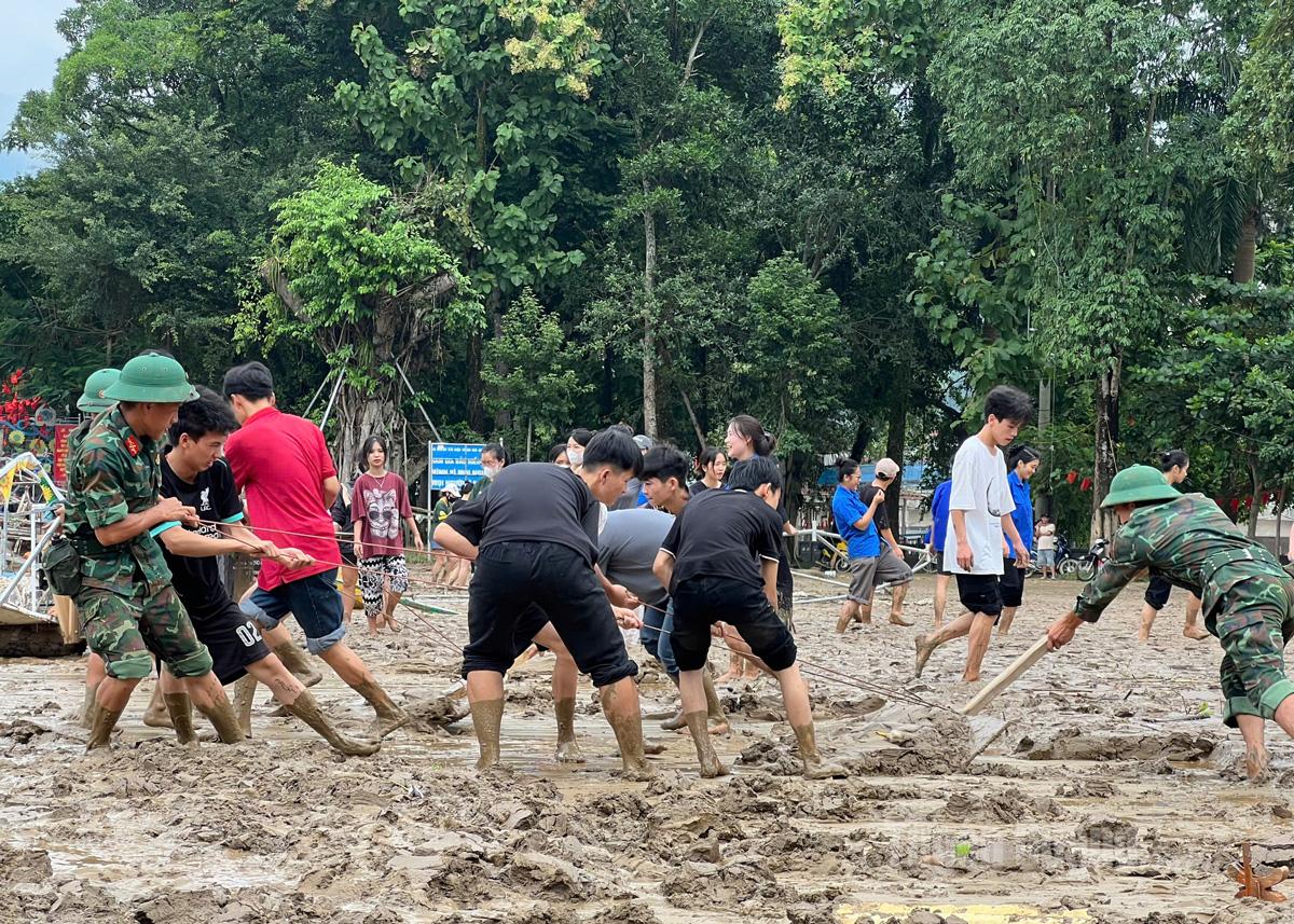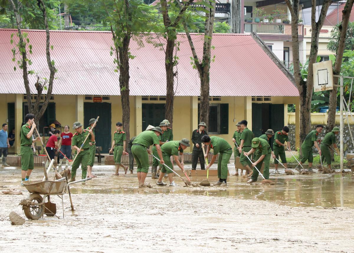 홍수가 빠진 직후, 400명이 넘는 군인, 경찰관, 군인들이 현지군과 함께 긴급히 10호 폭풍으로 큰 피해를 입은 하장 1구, 하장 2구, 응옥즈엉 사에서 주민들이 피해를 극복할 수 있도록 지원했습니다.
