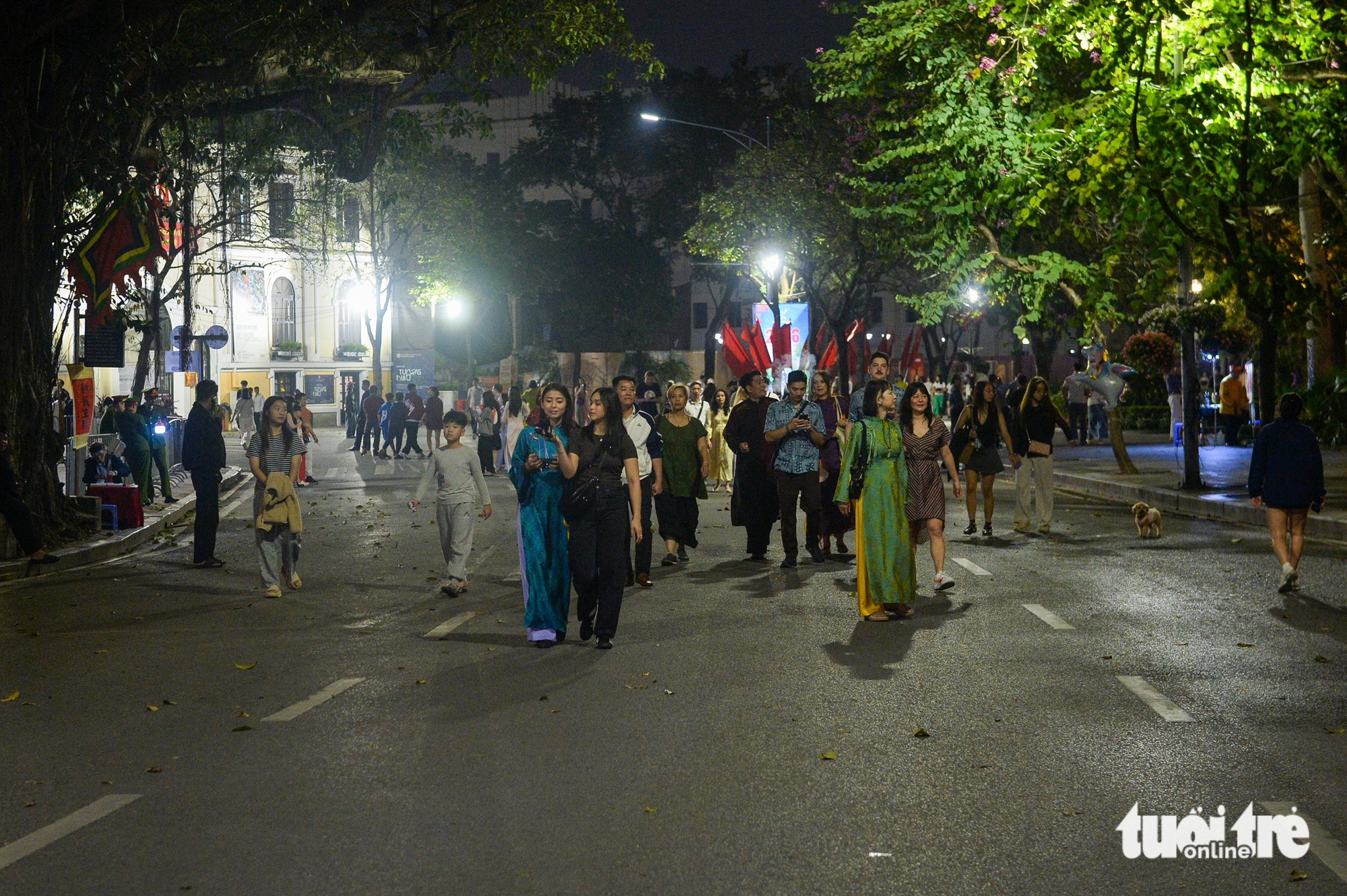 Người dân đổ về vườn hoa Lý Thái Tổ, Hà Nội để vui chơi, chụp ảnh - Ảnh: PHÚC TÀI