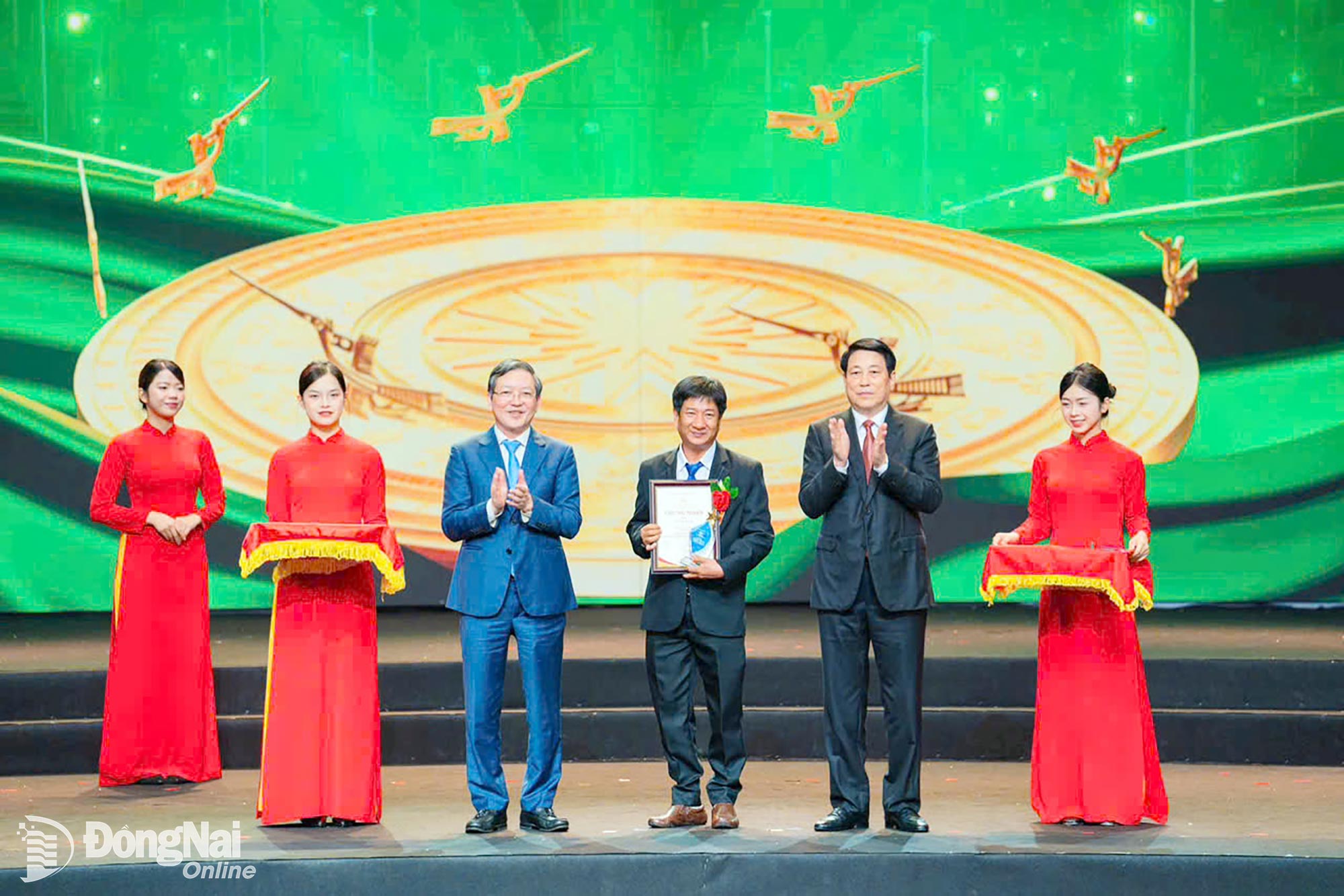 | 콴팟 꿀 공장 소유주인 레록꾸안(Le Loc Quan) 씨는 중앙 정부 지도자들이 수여하는 시상식에서 "2025년 베트남 우수 농부" 상을 받았습니다. 사진: NVCC |