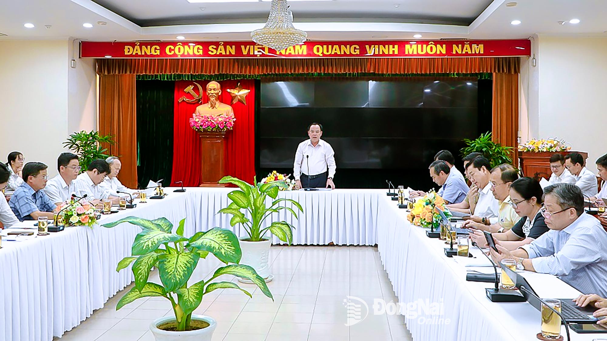 Phó Bí thư Tỉnh ủy, Chủ tịch UBND tỉnh Đồng Nai Võ Tấn Đức chủ trì Hội nghị giao ban thường kỳ tiến độ giải ngân vốn đầu tư công năm 2025. Ảnh: Phạm Tùng |