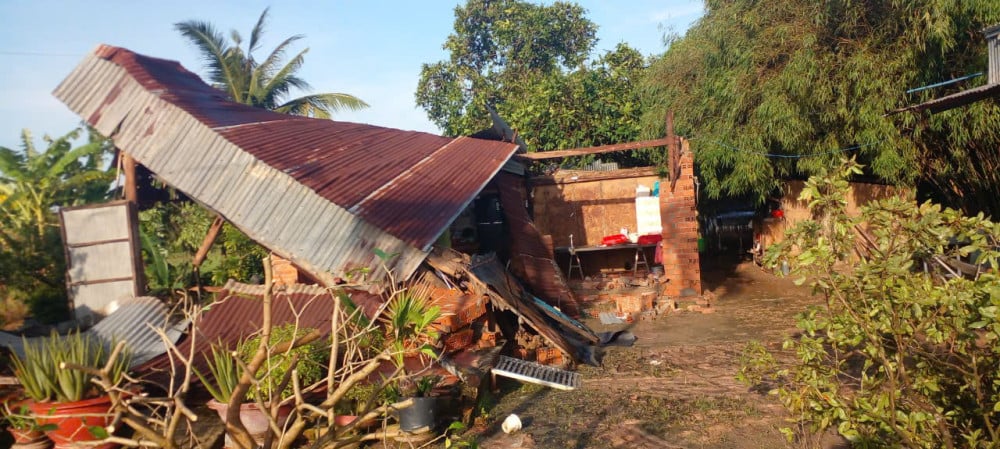 차우탄(Chau Thanh) 마을의 주택이 폭풍우로 인해 붕괴되었습니다(2025년 10월 18일)