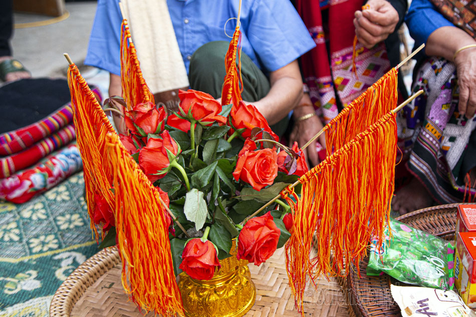 하지만 기원이 다르기 때문에 파싸라오 마을의 물 뿌리기 축제 의식 중 일부는 상당한 차이를 보입니다. 파싸라오 마을에서는 축제 기간 동안 마을 전체를 폐쇄합니다. 축제에 참여하려면 모든 사람이 스카프를 착용해야 하며, 이는 필수입니다. 또한, 손목에 실을 묶고 무당에게 축복을 받을 때 마을 어른들은 선물(보통 소액의 돈)을 바치는데, 이 선물을 받는 사람은 어린 소녀들입니다. 이는 마을의 풍요와 번영을 상징합니다.
