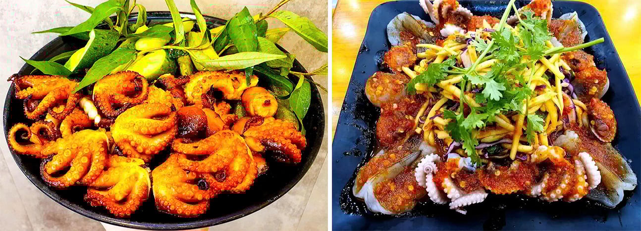 하오 키엣 레스토랑의 맛있는 문어 요리.