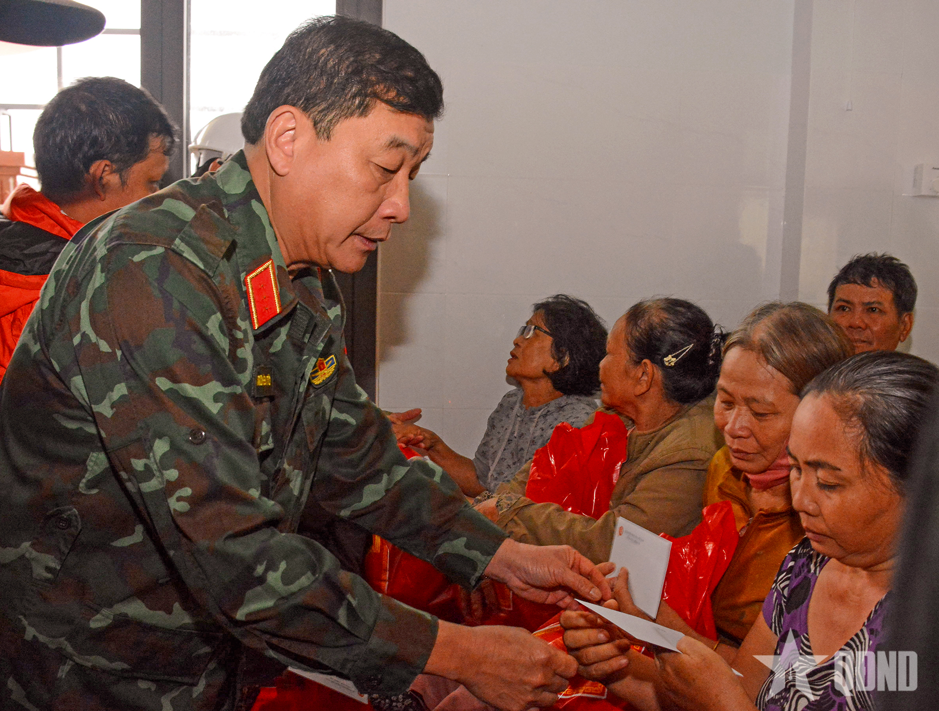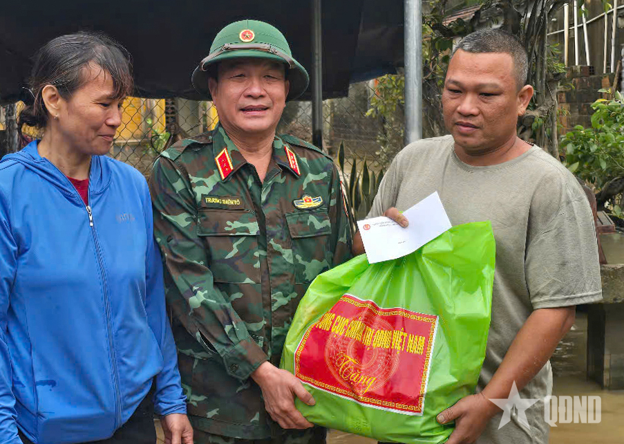 쯔엉 티엔 토 중장은 사람들에게 선물을 전달하며, 사람들이 이 어려운 시기를 극복하기 위해 노력하고, 강인하게 대처하며, 단결하기를 바랐습니다. 선물은 값진 것은 아니었지만, 중앙군사위원회, 국방부 , 그리고 베트남 인민군 정치국이 홍수 피해 지역 주민들에게 보낸 진심 어린 위로였습니다.
